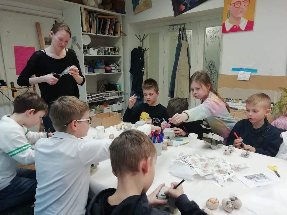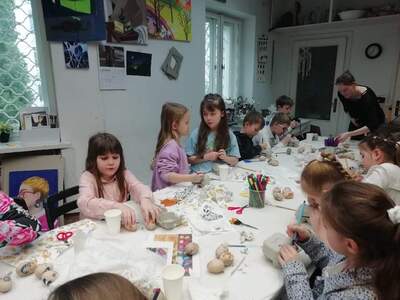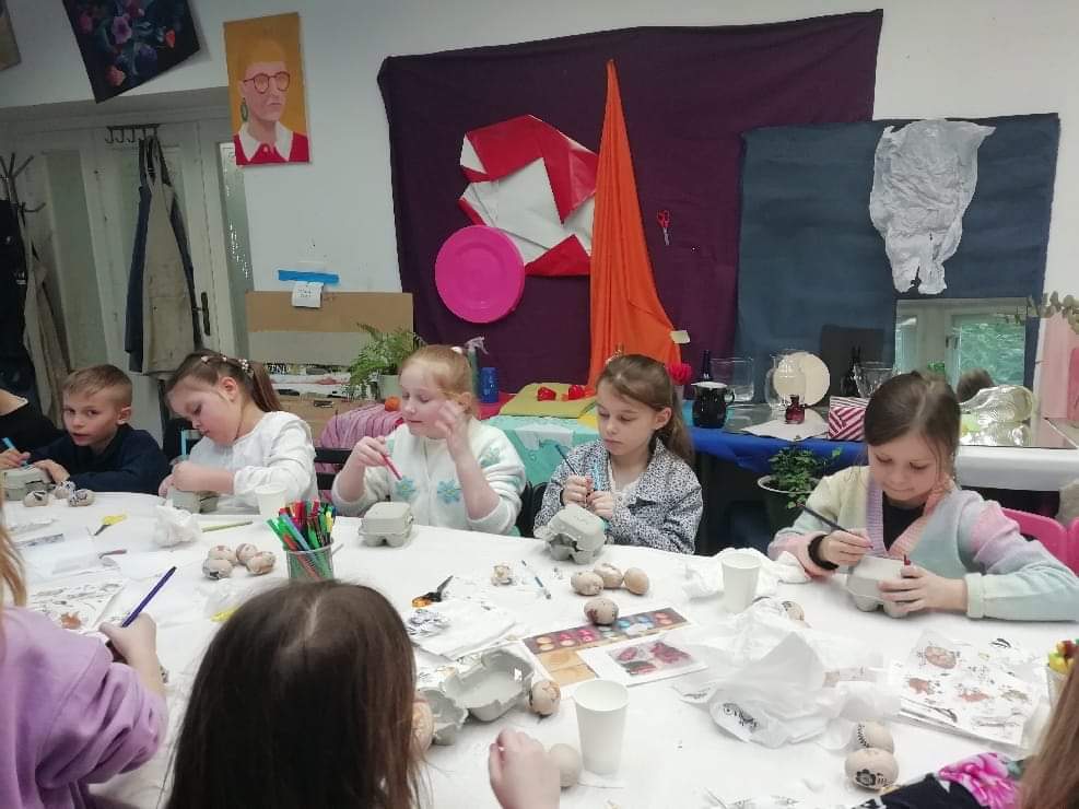 Następnie odwiedziliśmy Centrum edukacyjne "Sztukarnia" na Mokotowie. Uczniowie uczestniczyli w warsztatach artystycznych: poznali naturalne barwniki do kolorowania jajek oaz technikę decoupage. Dzieci miały możliwość odkryć swoją kreatywność oraz zdobyć nowe umiejętności. Wykonane samodzielnie jajka🥚🐥, będą miłą pamiątką na świątecznym stole. Na zakończenie wycieczki wstąpiliśmy do Mc Donalda. Dziewczynki i chłopcy zadowoleni i pełni pozytywnych emocji wrócili do Grójca☺️.