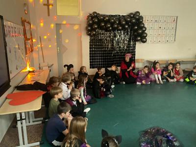 Uczniowie klas 2f i 1c dzięki swoim wychowawczyniom p. Magdalenie Łuszczyk i p. Elżbiecie Feruś, zostali przeniesieni do krainy wróżb i przepowiedni. Każdy mógł miedzy innymi dowiedzieć się jaki zawód będzie wykonywać w przyszłości lub jak będzie nazywać się jego przyszła, druga połowa. Nie zabrakło również wspaniałej muzyki, przy której każdy z uczestników zabawy mógł zaprezentować swoje umiejętności taneczne 😄