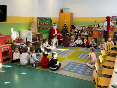 Dzieci były bardzo przejęte wizytą św. Mikołaja🎅, który dla wszystkich dzieci przywiózł prezenty🎁🎁🎁.