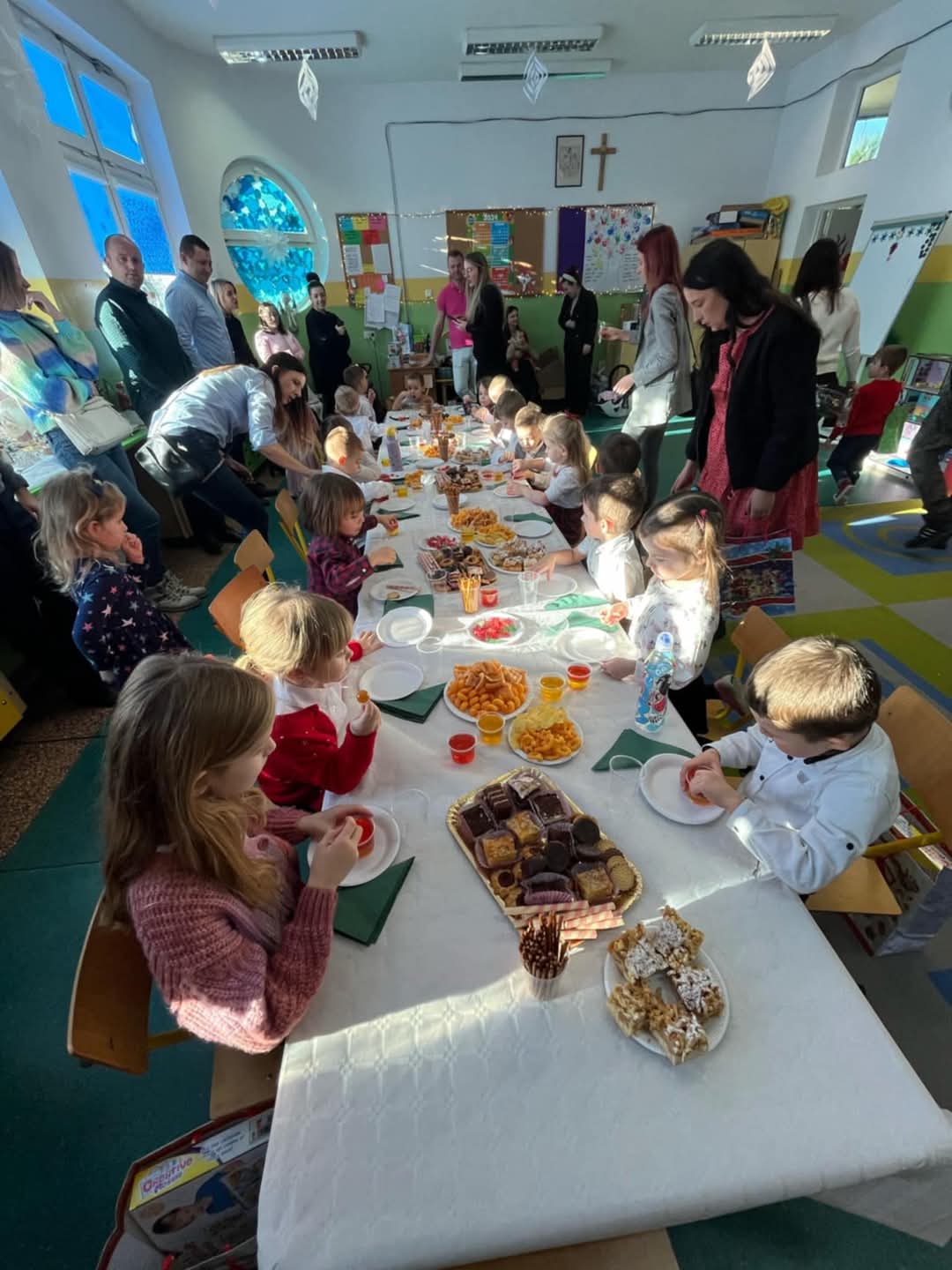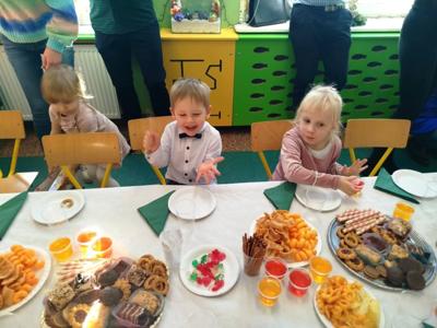 W kolędowaniu uczestniczyli także rodzice dzieci, którzy przygotowali słodki poczęstunek.