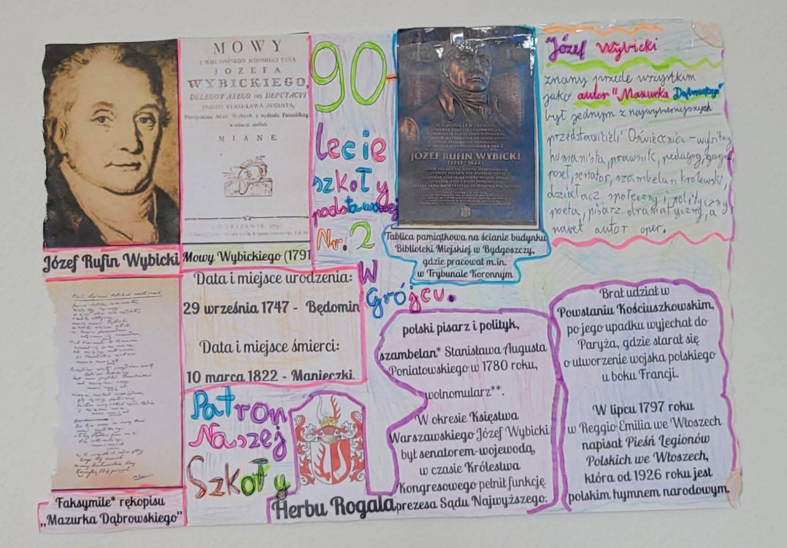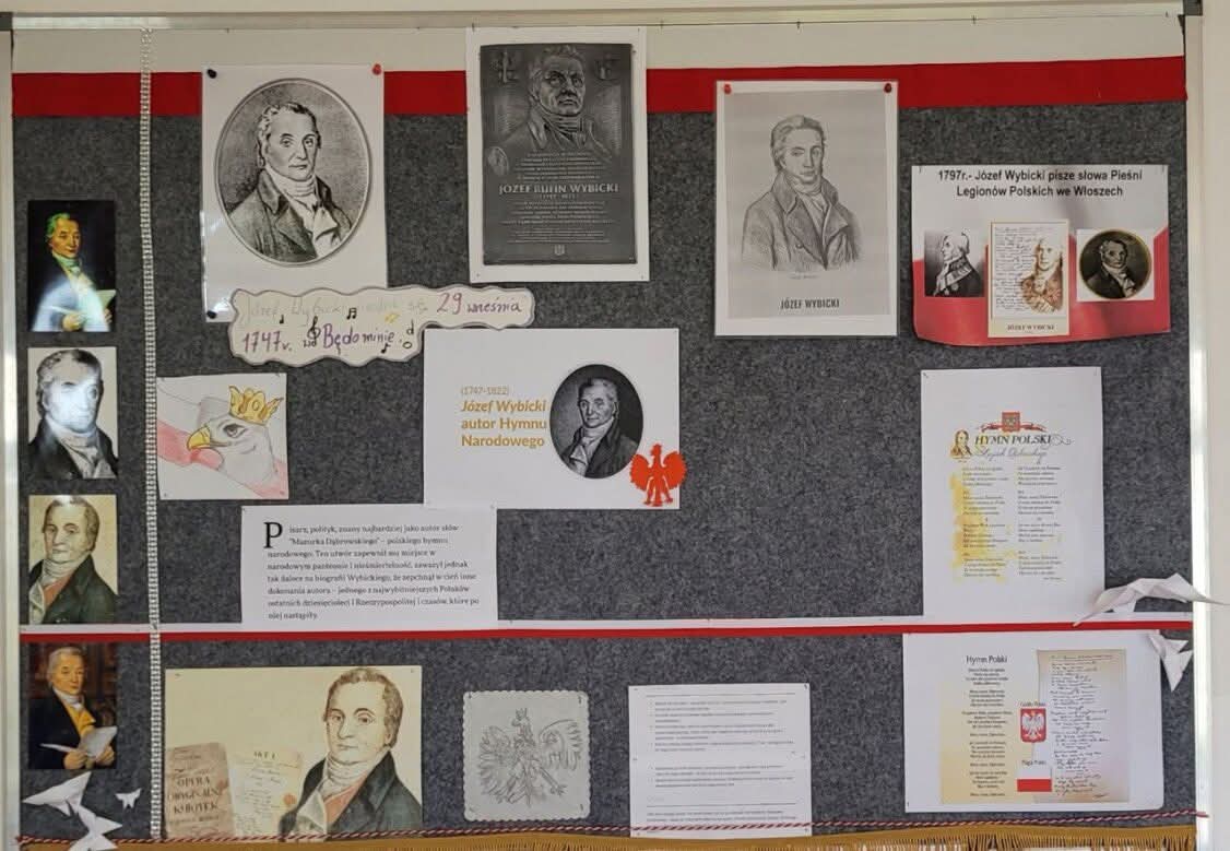 Odbyła się Wybicjada, konkursy tematyczne związane z sylwetką Józefa Wybickiego, uczniowie stworzyli okolicznościowe lapbooki oraz gazetki klasowe, które można podziwiać w galerii.