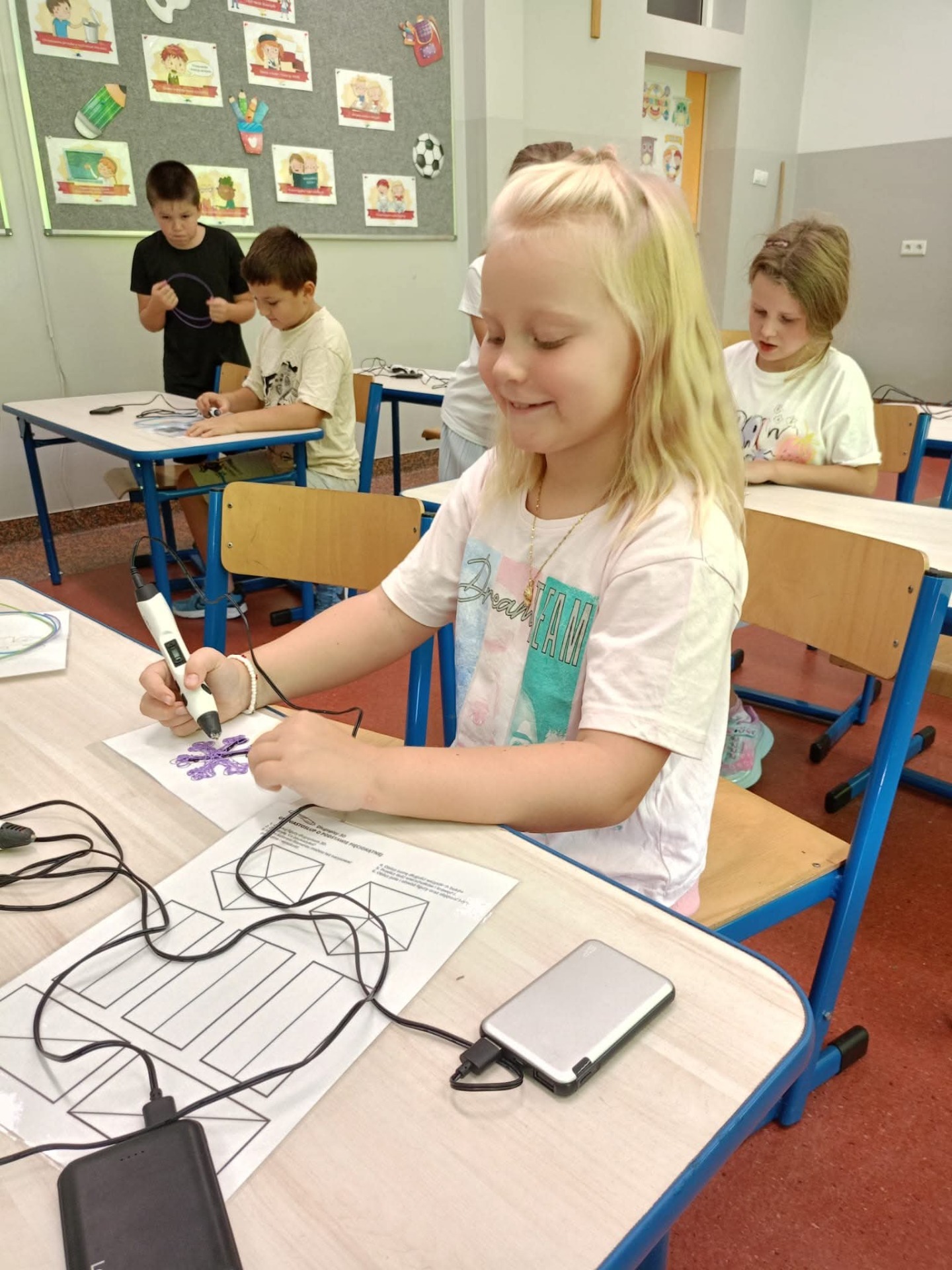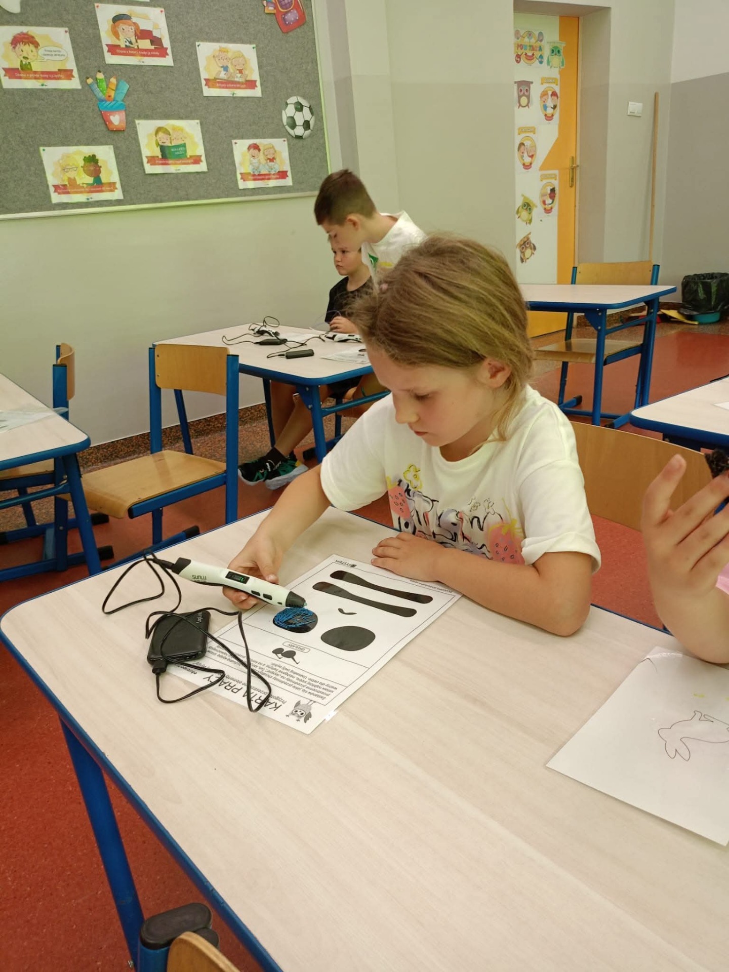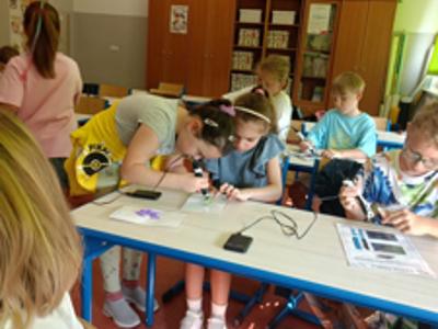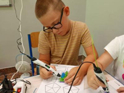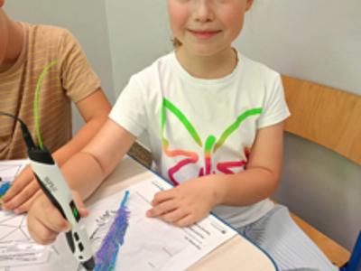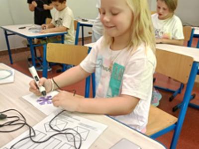 Uczniowie klasy 2c w ramach szkolnego projektu "Laboratorium przyszłości" tworzyli kreatywne prace z użyciem długopisów 3D.