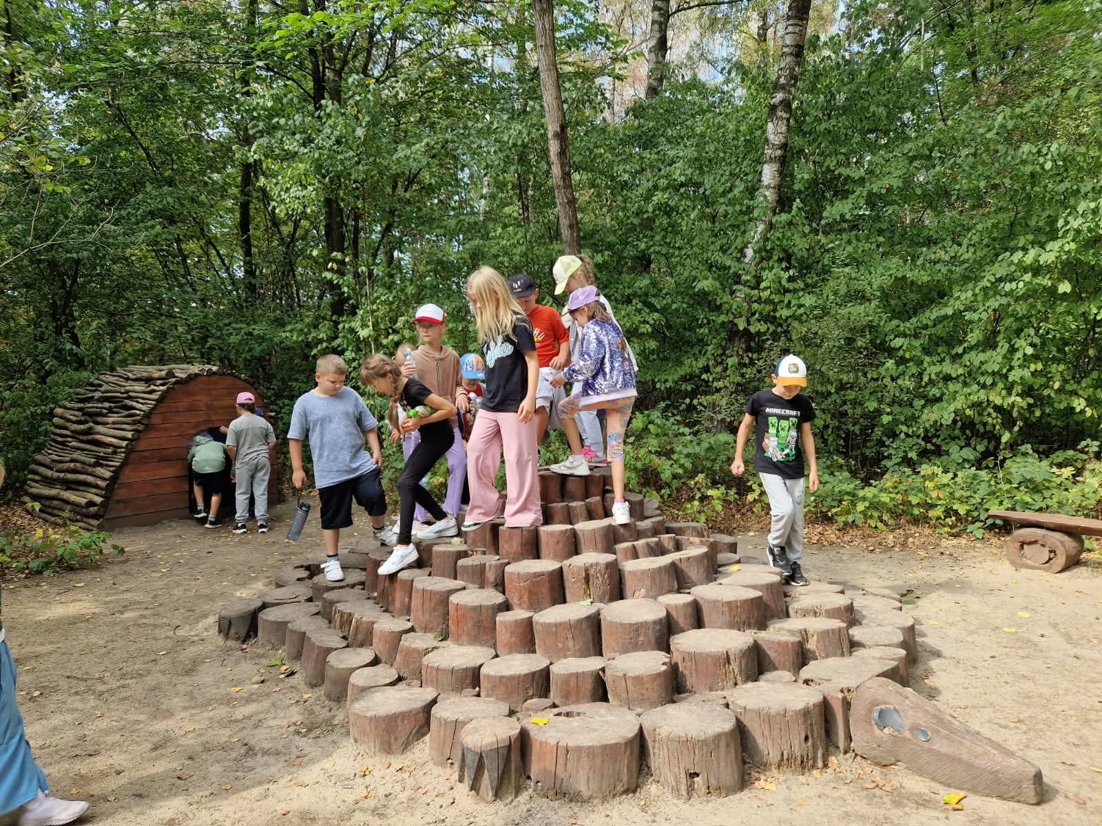 Uczniowie klas 2a, 2f, 3b i 3c wraz z nauczycielami rozpoczęli nowy rok szkolny od integracyjnej wycieczki na świeżym powietrzu jadąc do „ Lasu Odkrywców”🤩.