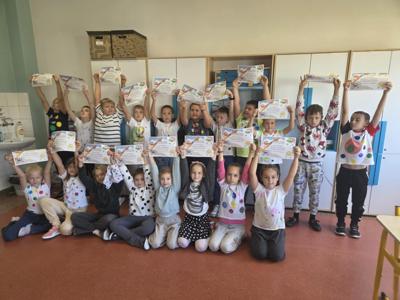 Dzieci tworzyły piękne prace plastyczne, wykorzystując kolorowe kropki – malowały, wyklejały i rysowały, rozwijając swoją wyobraźnię i twórcze myślenie. W klasach panowała radosna atmosfera, a każdy mógł poczuć się prawdziwym artystą!