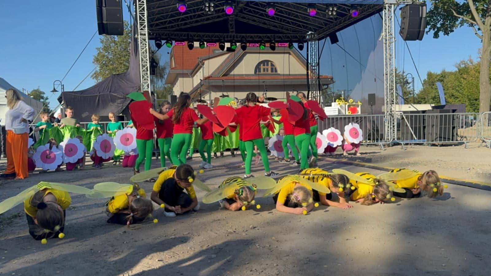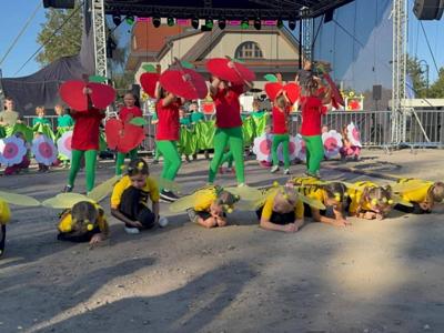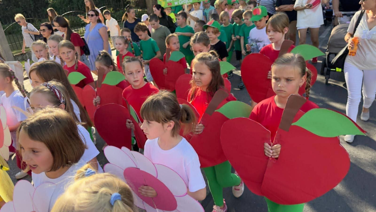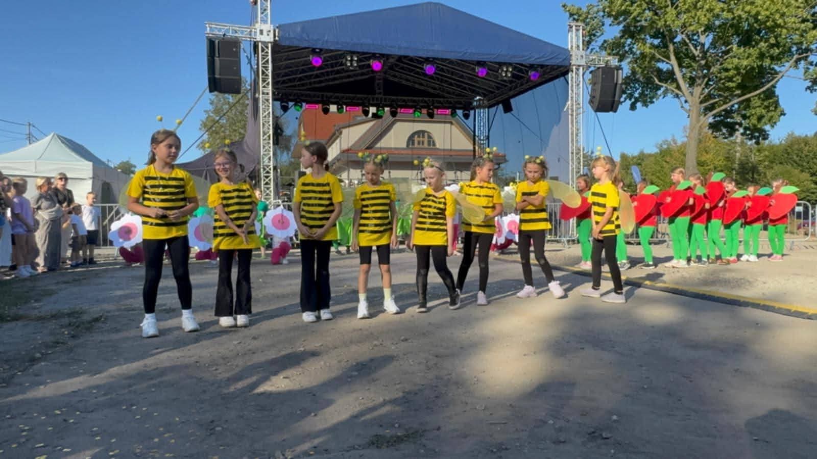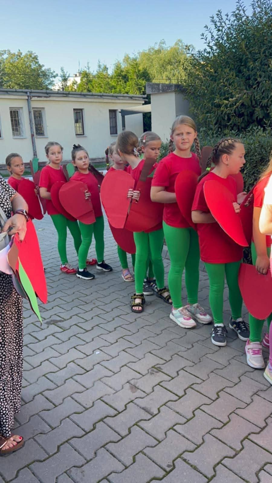 Uroczystość rozpoczęła się barwnym korowodem ulicami miasta, po czym uczestnicy dotarli do miejsca, w którym znajduje się budynek kolejki wąskotorowej. Tam dzieci czekały na swój występ. Zaprezentowały piękny taniec z kwiatami oraz „taniec jabłuszek🍎🍏”, w którym towarzyszyły im pszczółki i zielona trawka. Występ był niezwykle kolorowy, radosny i spotkał się z bardzo ciepłym przyjęciem publiczności. W uroczystości brała udział pani dyrektor Agata Pachocka, która doceniła zaangażowanie i przygotowanie dzieci. Dzieciom towarzyszyły ich wychowawczynie: pani Daria Deryng-Maliszewska, pani Anita Ptaszek oraz pani Emilia Szymczak👍.