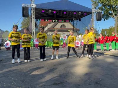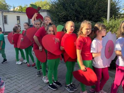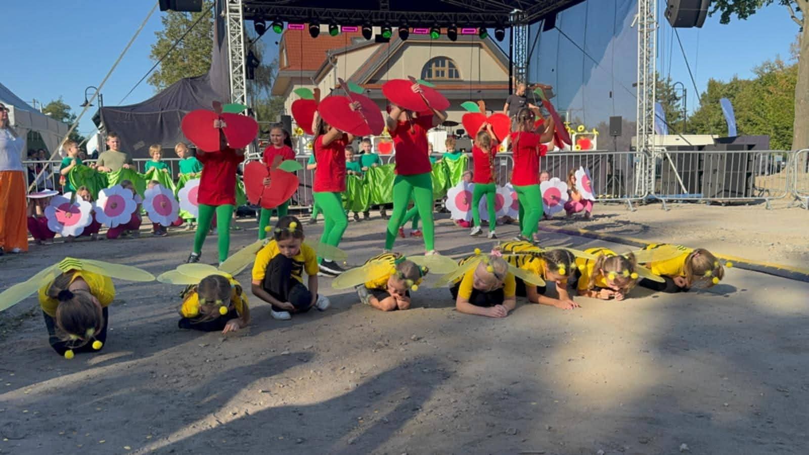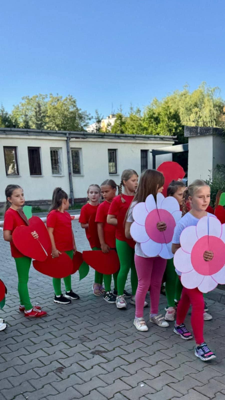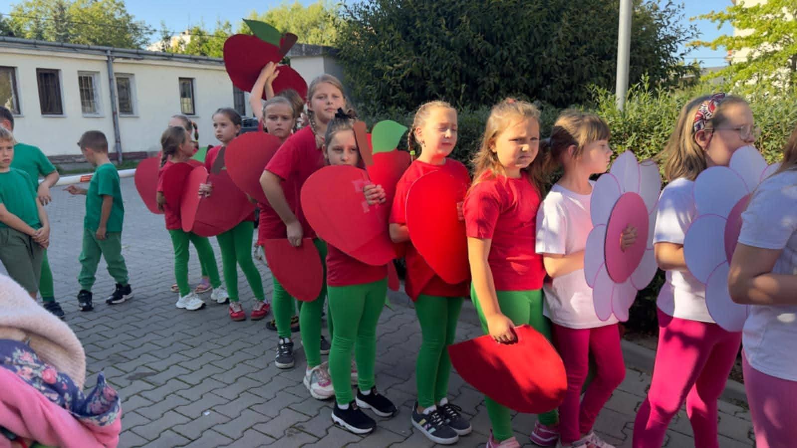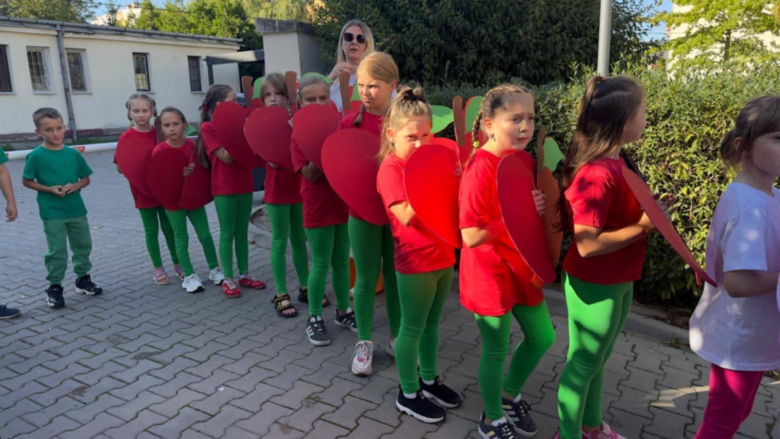 Uroczystość rozpoczęła się barwnym korowodem ulicami miasta, po czym uczestnicy dotarli do miejsca, w którym znajduje się budynek kolejki wąskotorowej. Tam dzieci czekały na swój występ. Zaprezentowały piękny taniec z kwiatami oraz „taniec jabłuszek🍎🍏”, w którym towarzyszyły im pszczółki i zielona trawka. Występ był niezwykle kolorowy, radosny i spotkał się z bardzo ciepłym przyjęciem publiczności. W uroczystości brała udział pani dyrektor Agata Pachocka, która doceniła zaangażowanie i przygotowanie dzieci. Dzieciom towarzyszyły ich wychowawczynie: pani Daria Deryng-Maliszewska, pani Anita Ptaszek oraz pani Emilia Szymczak👍.