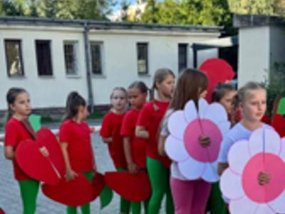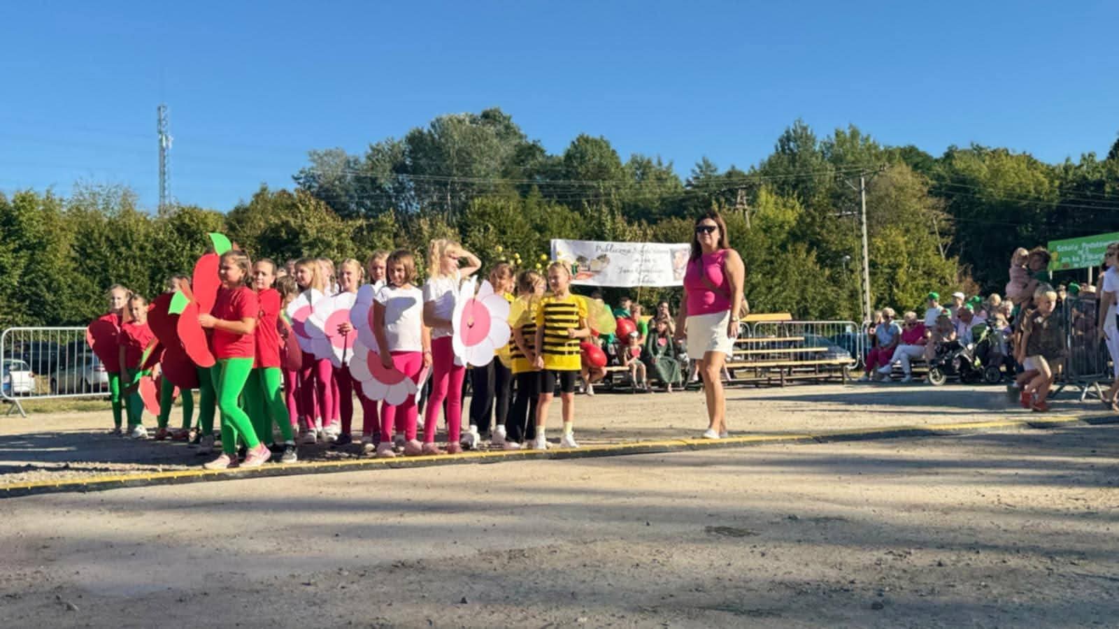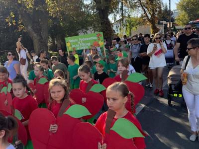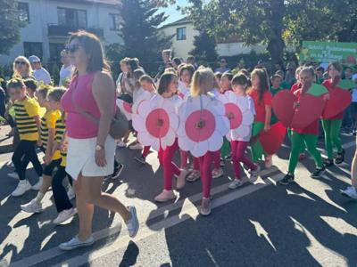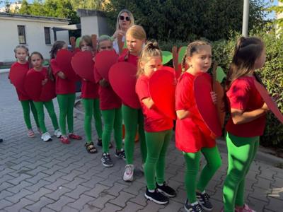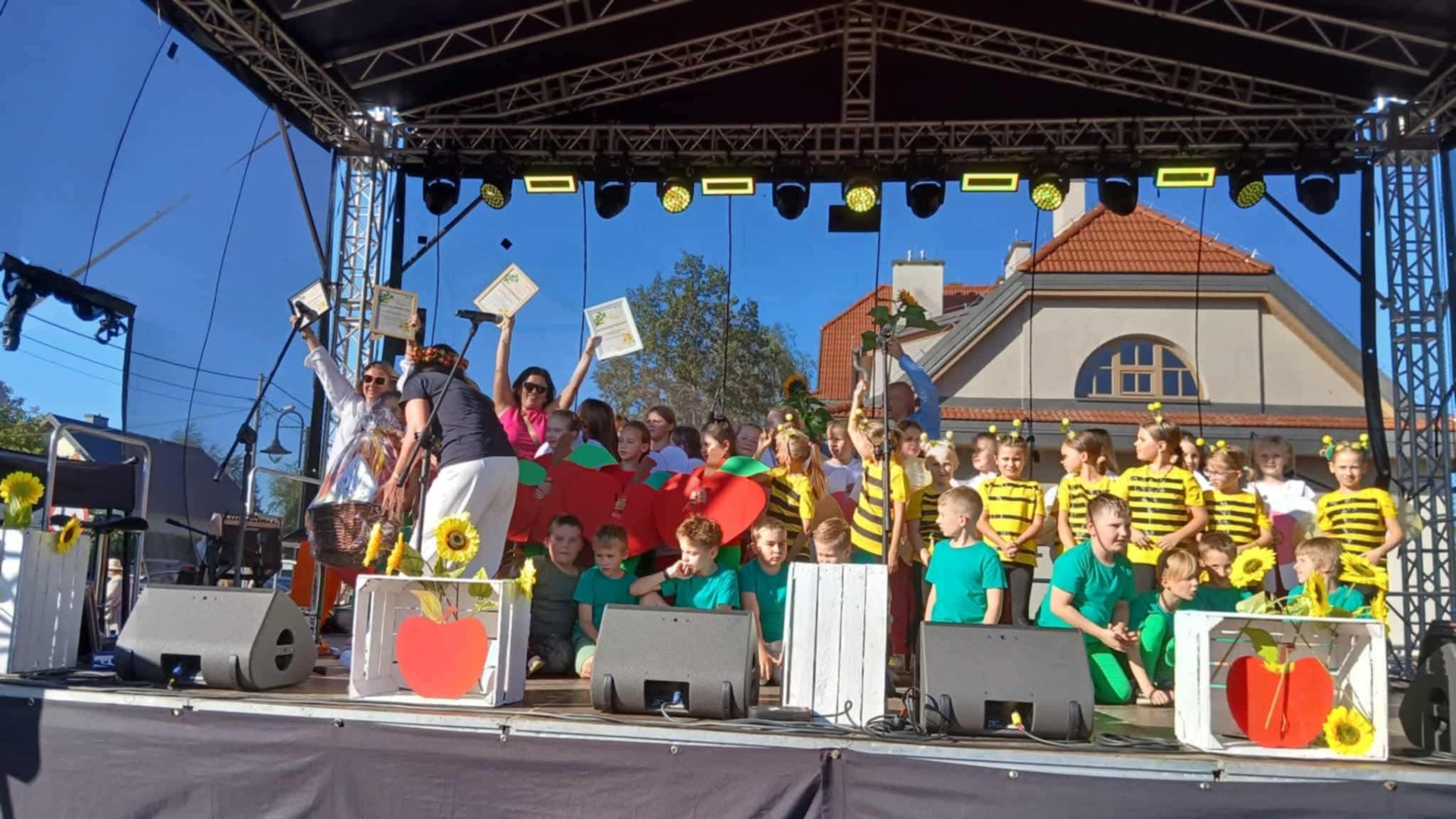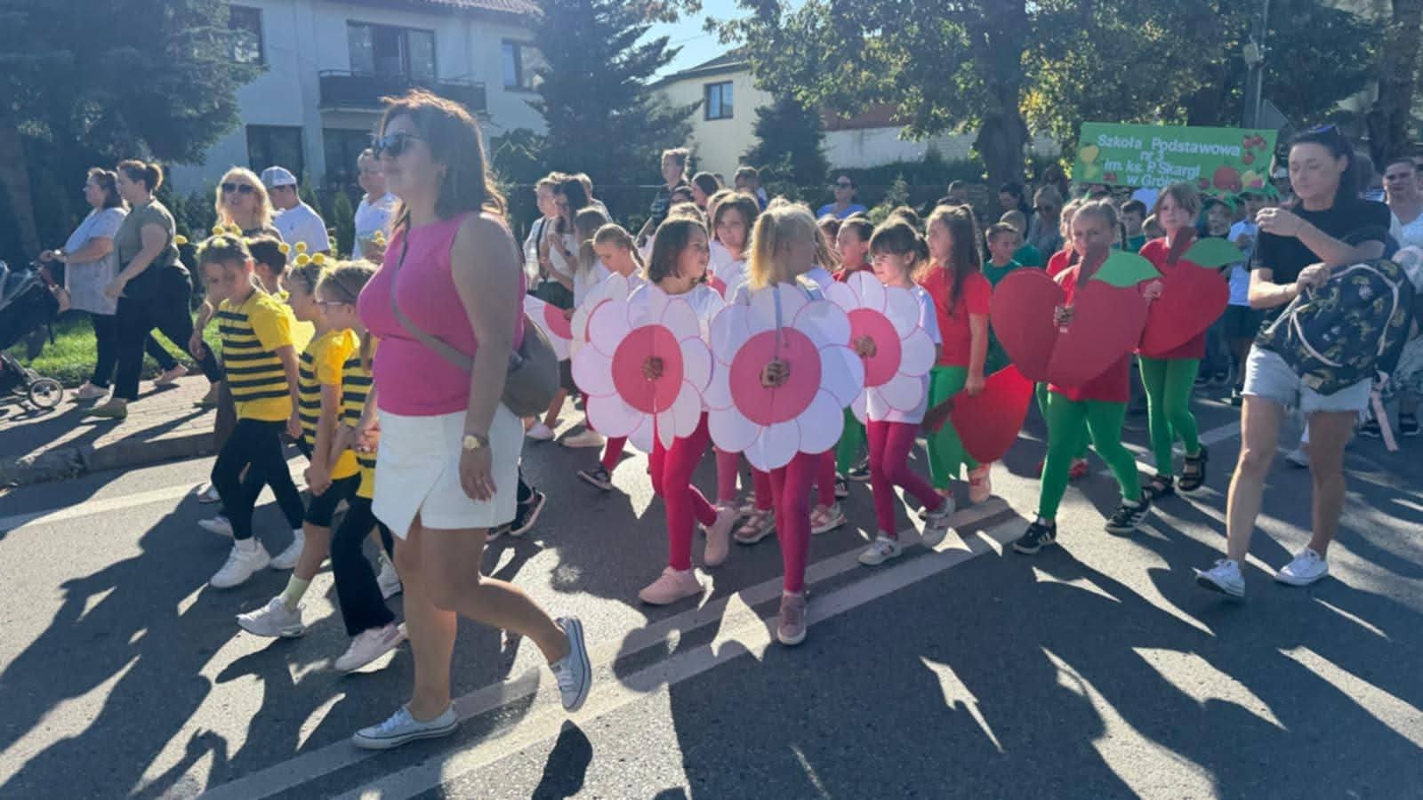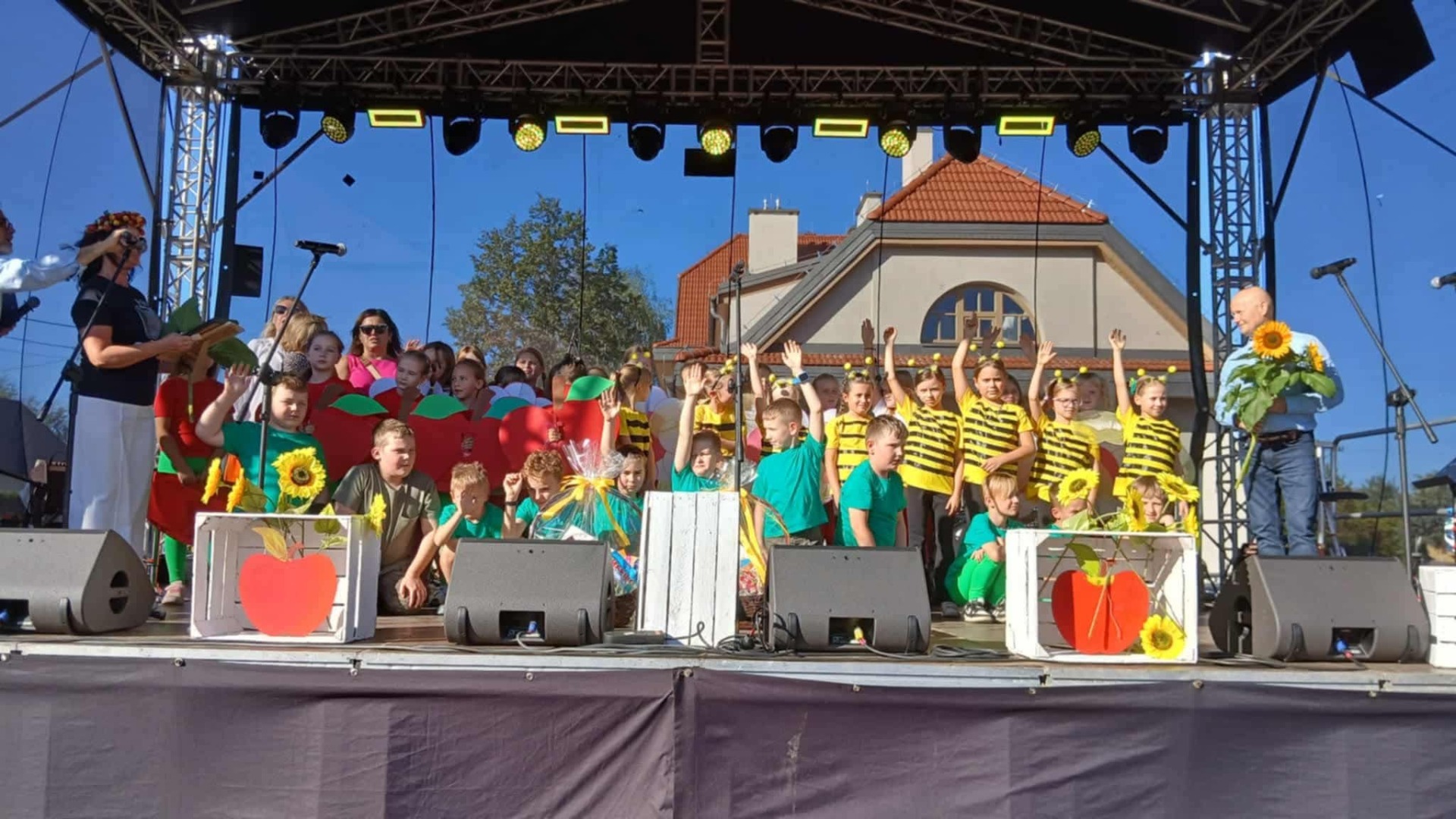 Uroczystość rozpoczęła się barwnym korowodem ulicami miasta, po czym uczestnicy dotarli do miejsca, w którym znajduje się budynek kolejki wąskotorowej. Tam dzieci czekały na swój występ. Zaprezentowały piękny taniec z kwiatami oraz „taniec jabłuszek🍎🍏”, w którym towarzyszyły im pszczółki i zielona trawka. Występ był niezwykle kolorowy, radosny i spotkał się z bardzo ciepłym przyjęciem publiczności. W uroczystości brała udział pani dyrektor Agata Pachocka, która doceniła zaangażowanie i przygotowanie dzieci. Dzieciom towarzyszyły ich wychowawczynie: pani Daria Deryng-Maliszewska, pani Anita Ptaszek oraz pani Emilia Szymczak👍.