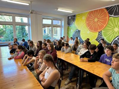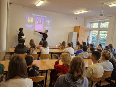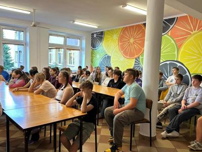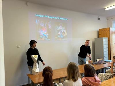 Kacper Merski i Piotr Zaborowski spotkali się w poniedziałkowe przedpołudnie z uczniami klas 6 i 7, aby przybliżyć im tematykę związaną z esportem.