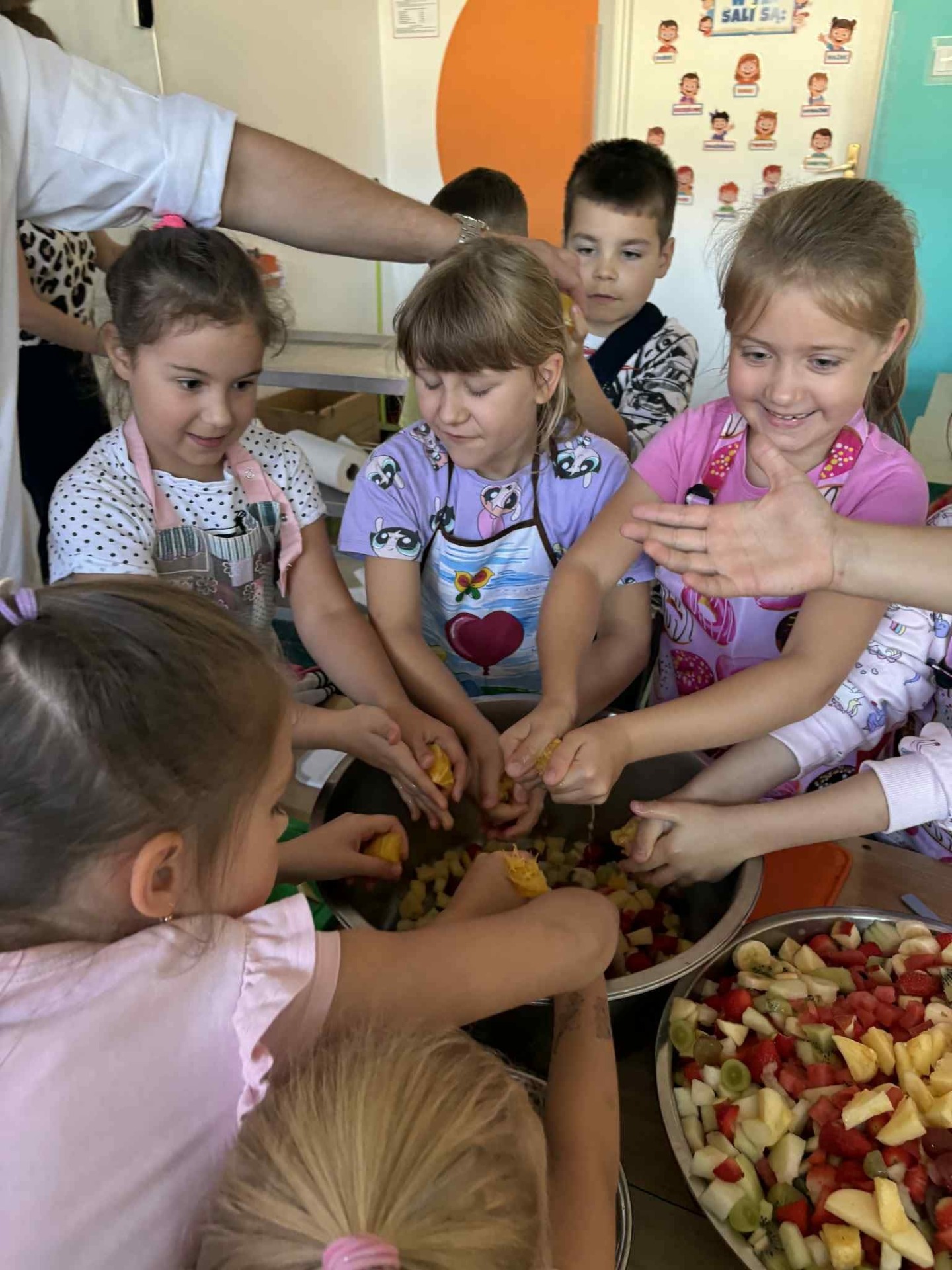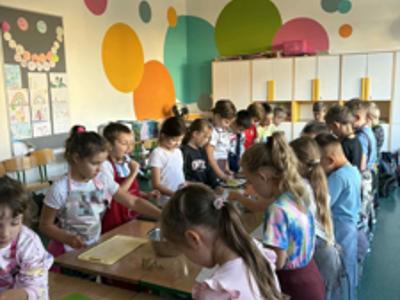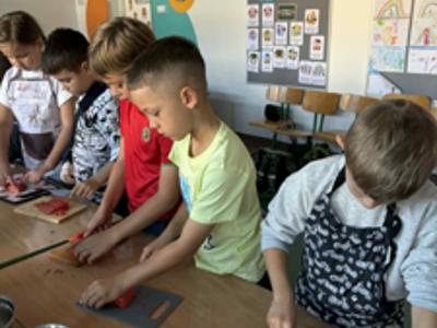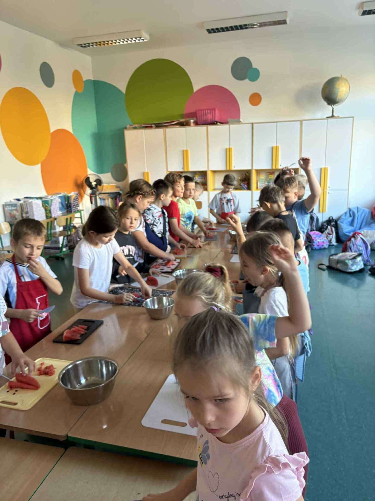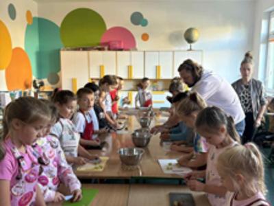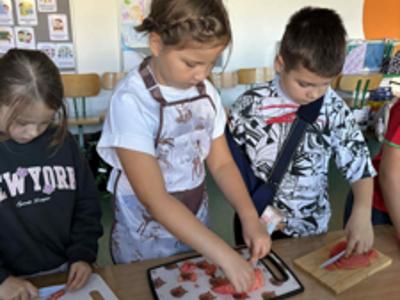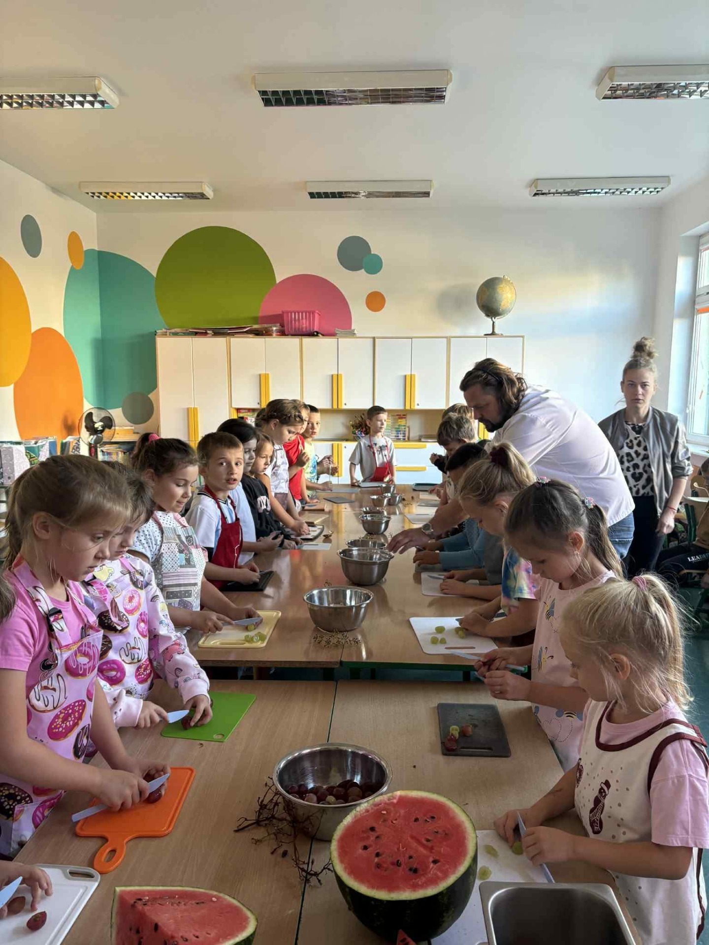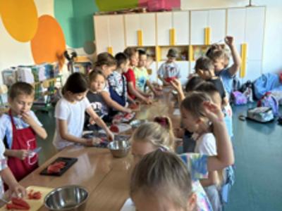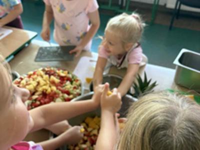 Klasę odwiedził najprawdziwszy kucharz 👨🍳 Pan Michał Stopczyński z Garden Events. Najpierw opowiedział o swoim zawodzie. Potem powiedział dlaczego warto jeść owoce 🍉 i warzywa 🥒. I dlaczego jest to szczególnie ważne jesienią. Następnie dzieci mogły sprawdzić swoją wiedzę o owocach egzotycznych. Następnym punktem programu była wspólna praca przy sałatce owocowej. Dzieci pod okiem pana Michała dzielnie kroiły, siekały i wyciskały wszystkie owoce 🍇 . Po ciężkiej pracy nastąpił najlepszy punkt programu czyli wspólna degustacja. Dziękujemy Panu Michałowi oraz mamie Róży Pani Katarzynie za organizację ciekawego spotkania. Warsztaty odbyły się w ramach doradztwa zawodowego.