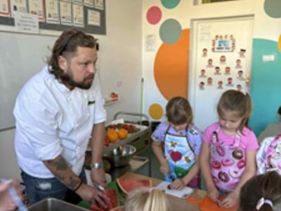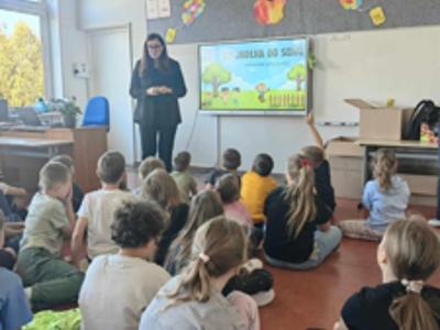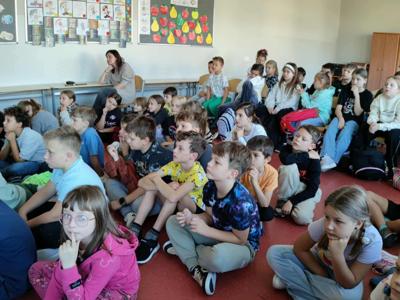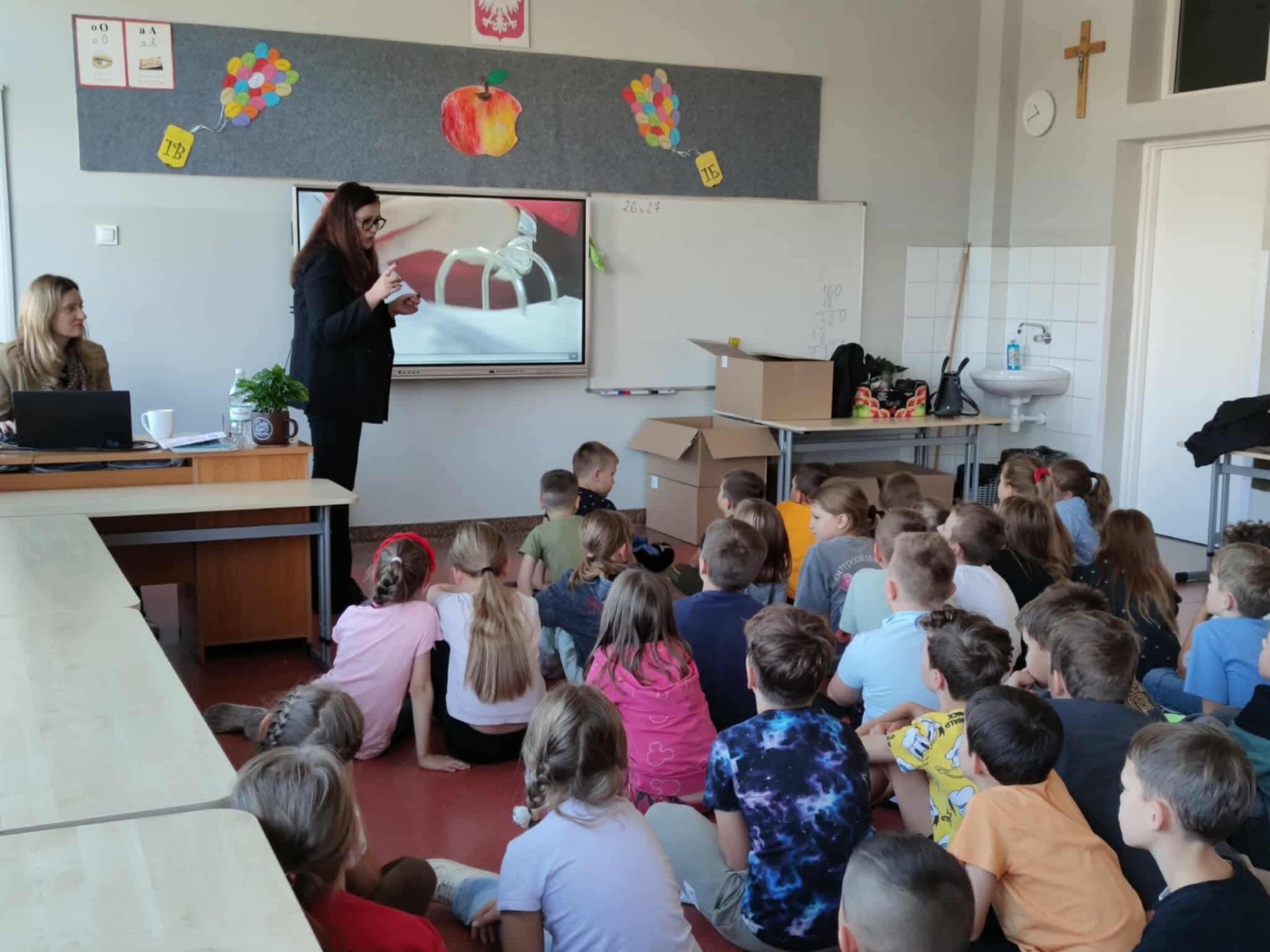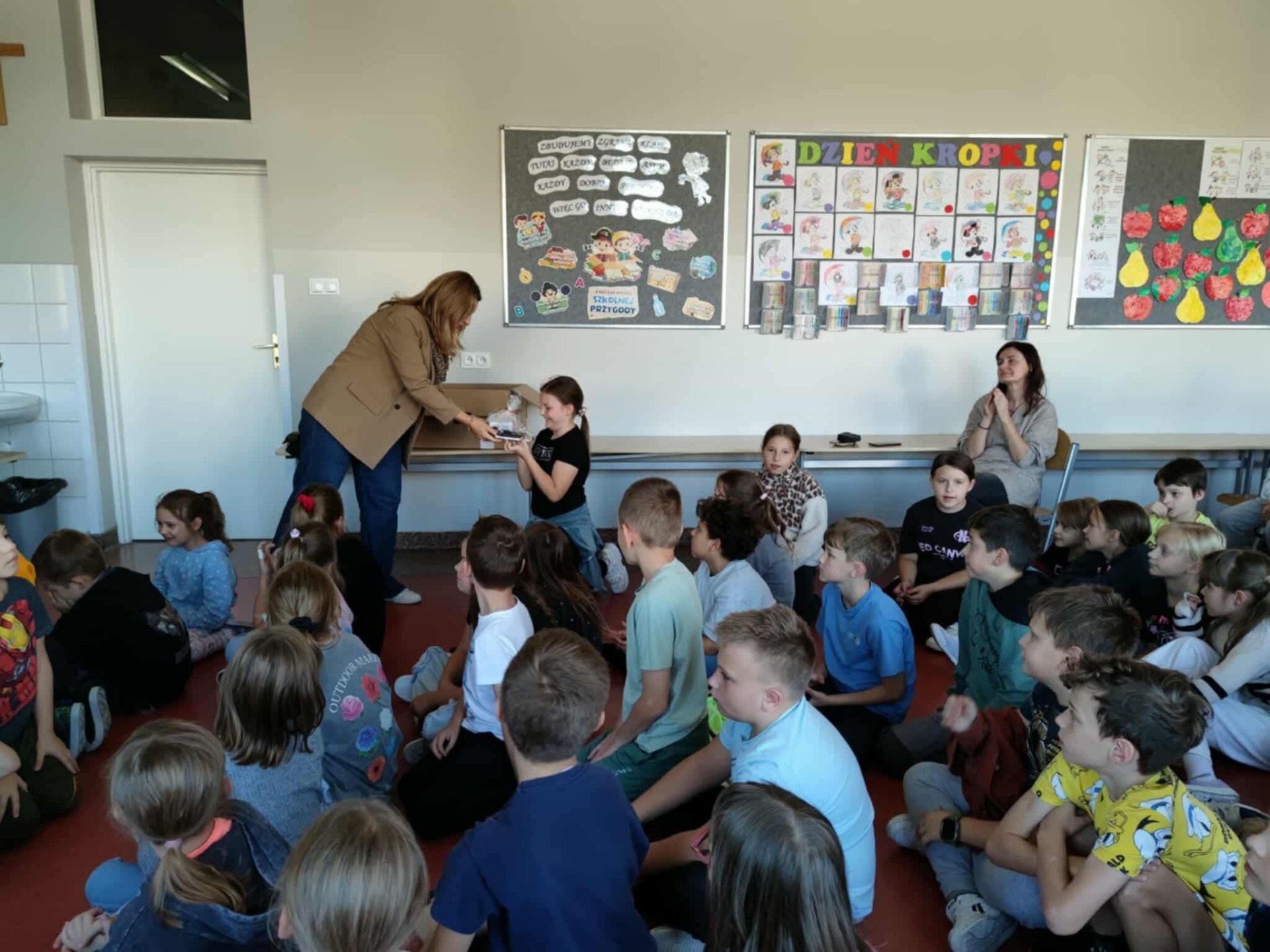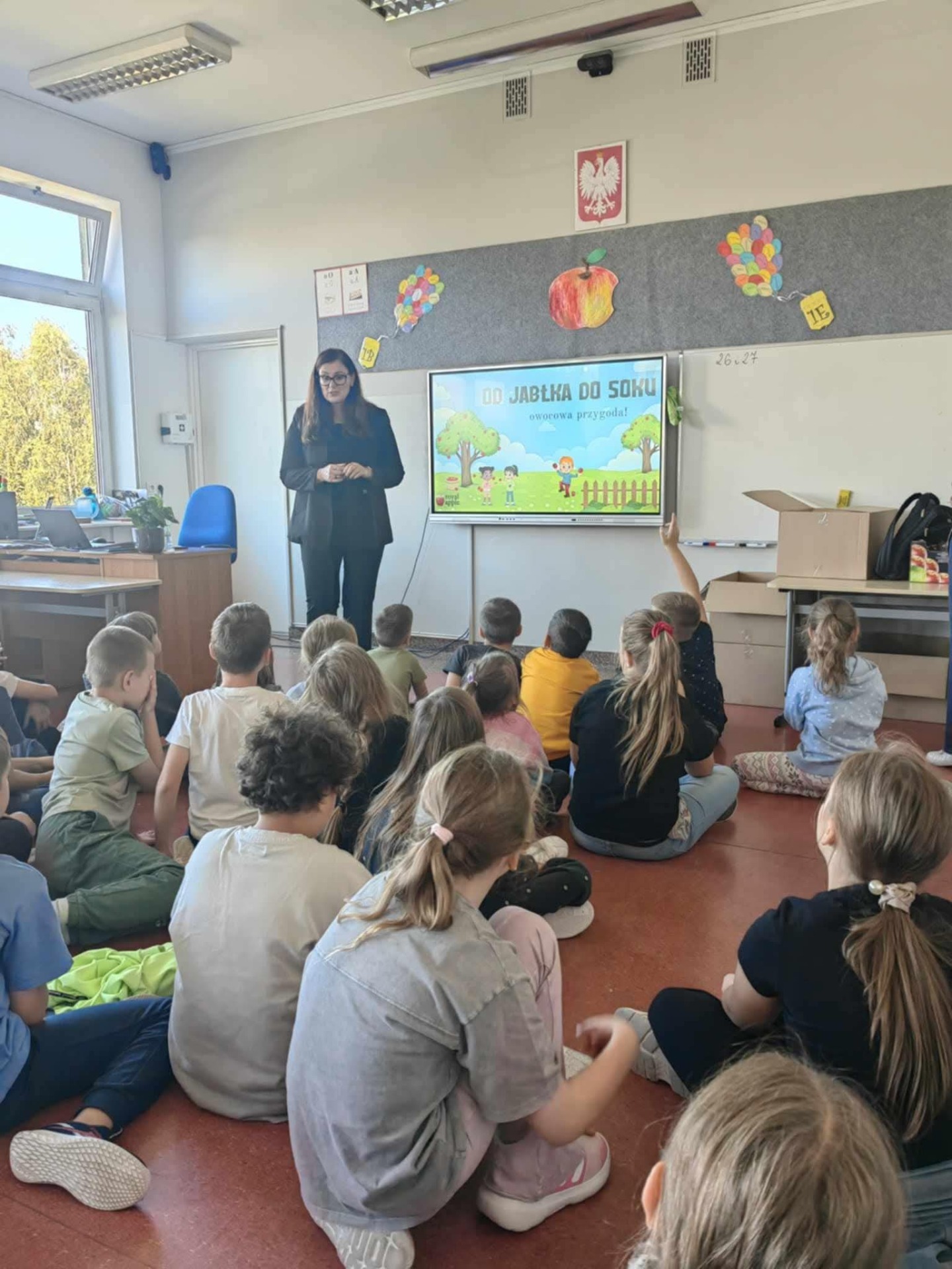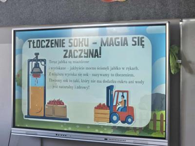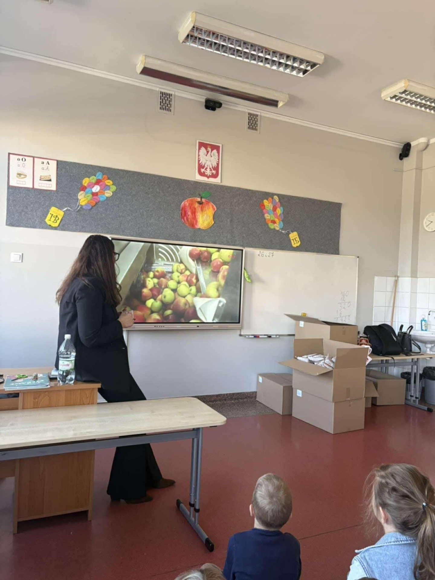 Dzieci poznały historię jabłka, a także mogły obejrzeć film przedstawiający linię produkcyjną. Na zakończenie spotkania każdy uczeń otrzymał pyszną niespodziankę – suszone jabłka przygotowane przez firmę Activ. 🍏✨