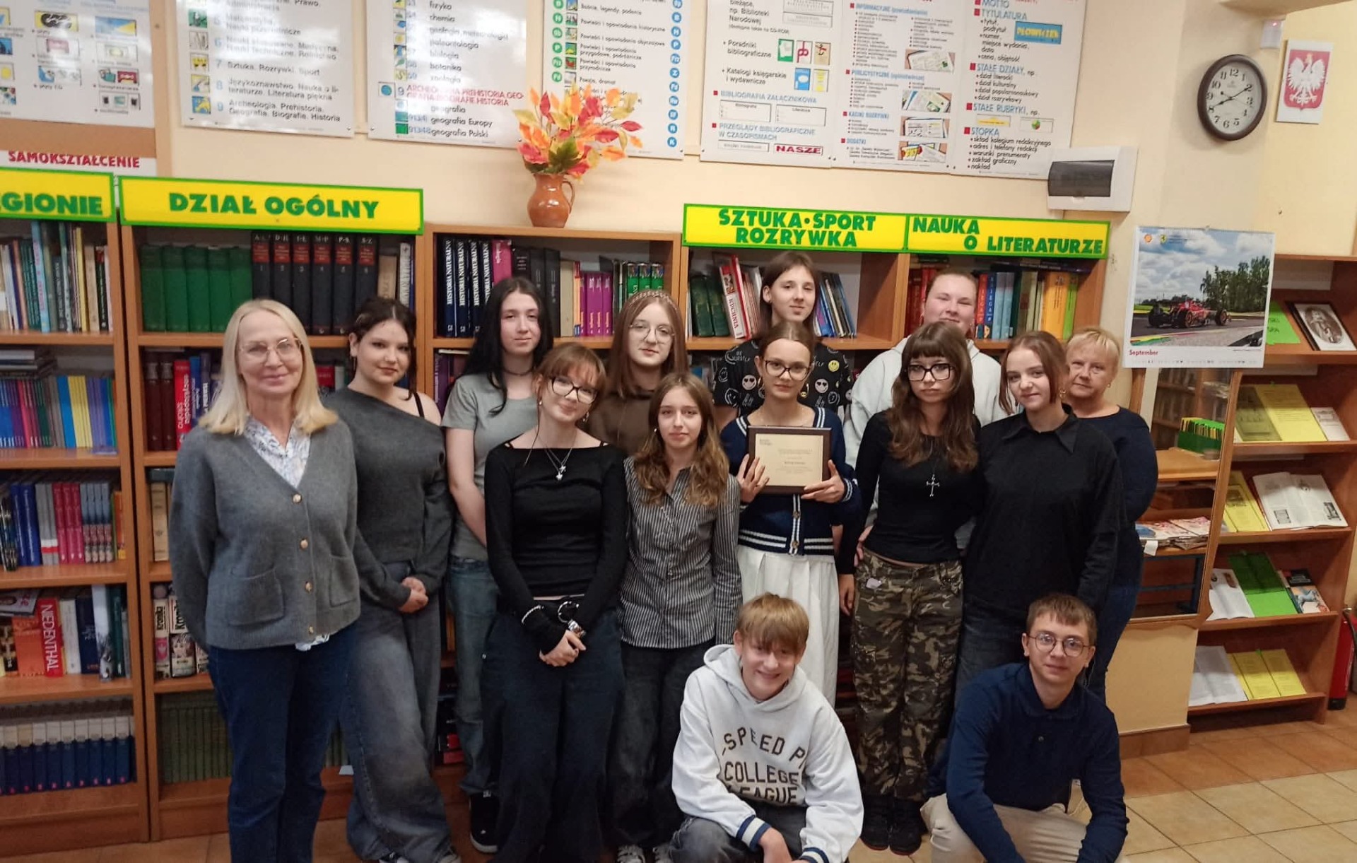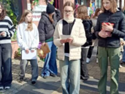 Na zdjęciu prezentujemy grupę projektową z klasy 8a, która w roku szkolnym 2024/2025 realizowała ogólnopolski projekt. W skład zespołu weszli: Ola, Joanna, Julia, Alicja, Kalina, Natalia, Ola, Michał, Nikola, Franciszek, Nikola, Aleksandra oraz – nieobecna na zdjęciu – Magdalena.