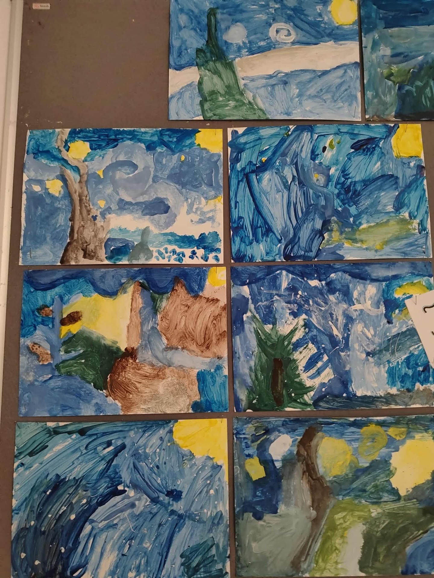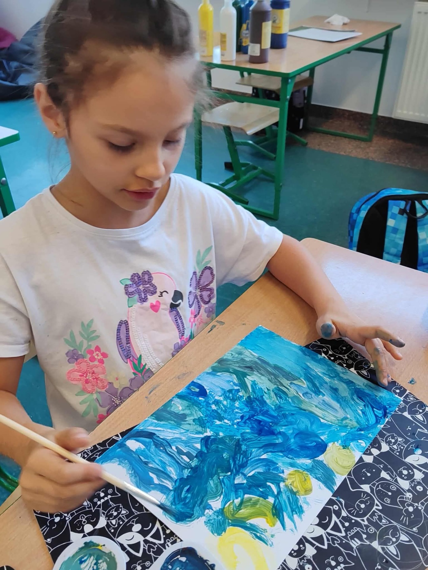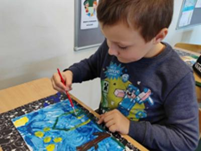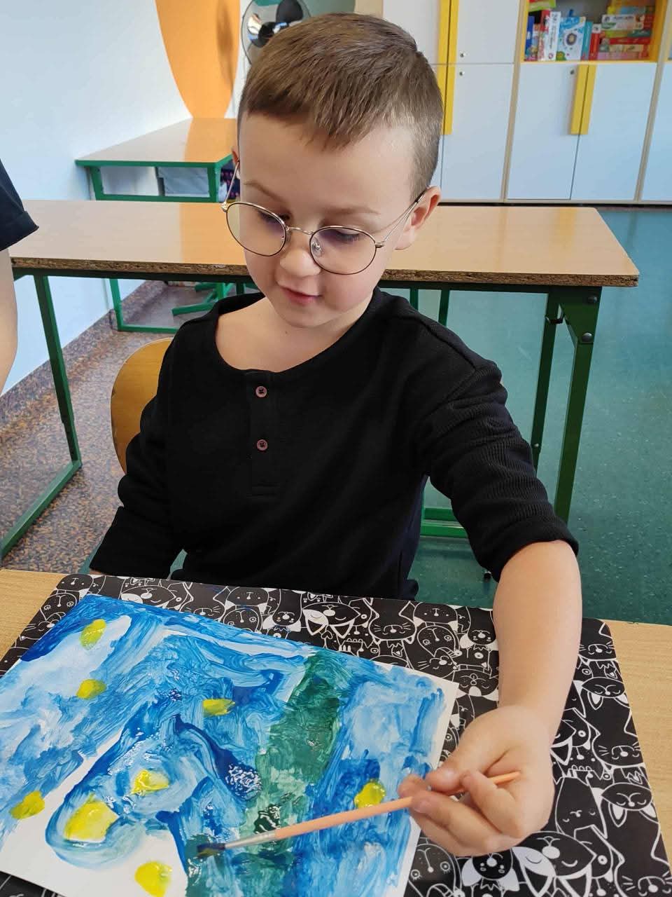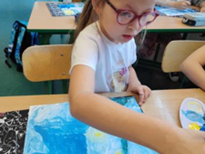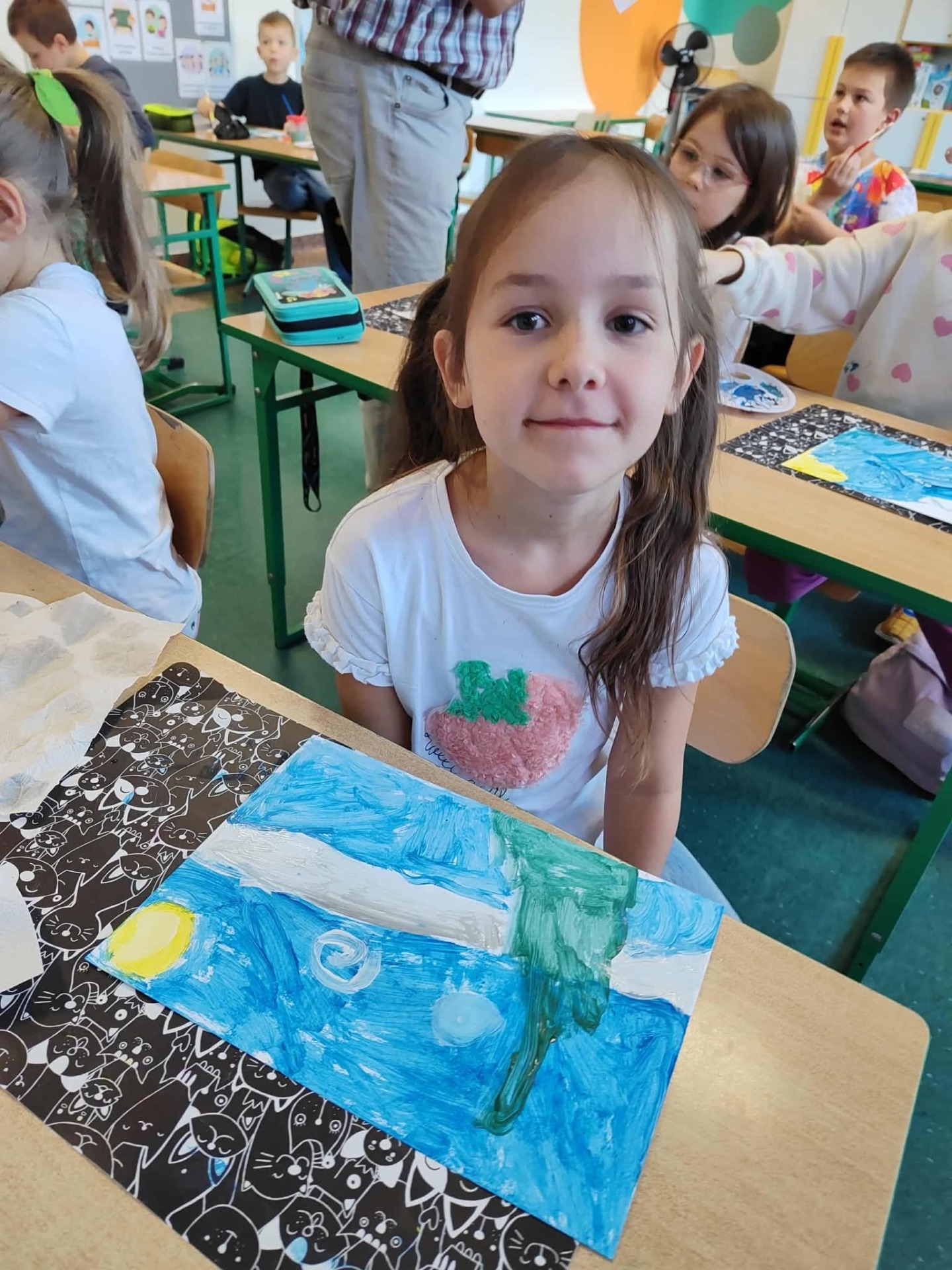 Spotkania ze sztuką w klasie 1f to codzienne zajęcia podczas których uczniowie poznają muzykę klasyczną 🎹oraz najwybitniejszych malarzy 🎨🖌️. A czy można namalować pracę inspirowaną obrazem Van Gogha " Gwieździsta noc" słuchając Chopina Nocturne op 9 no 2 😉?