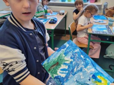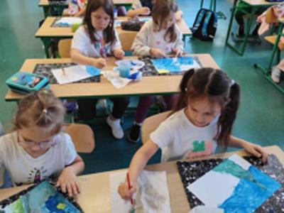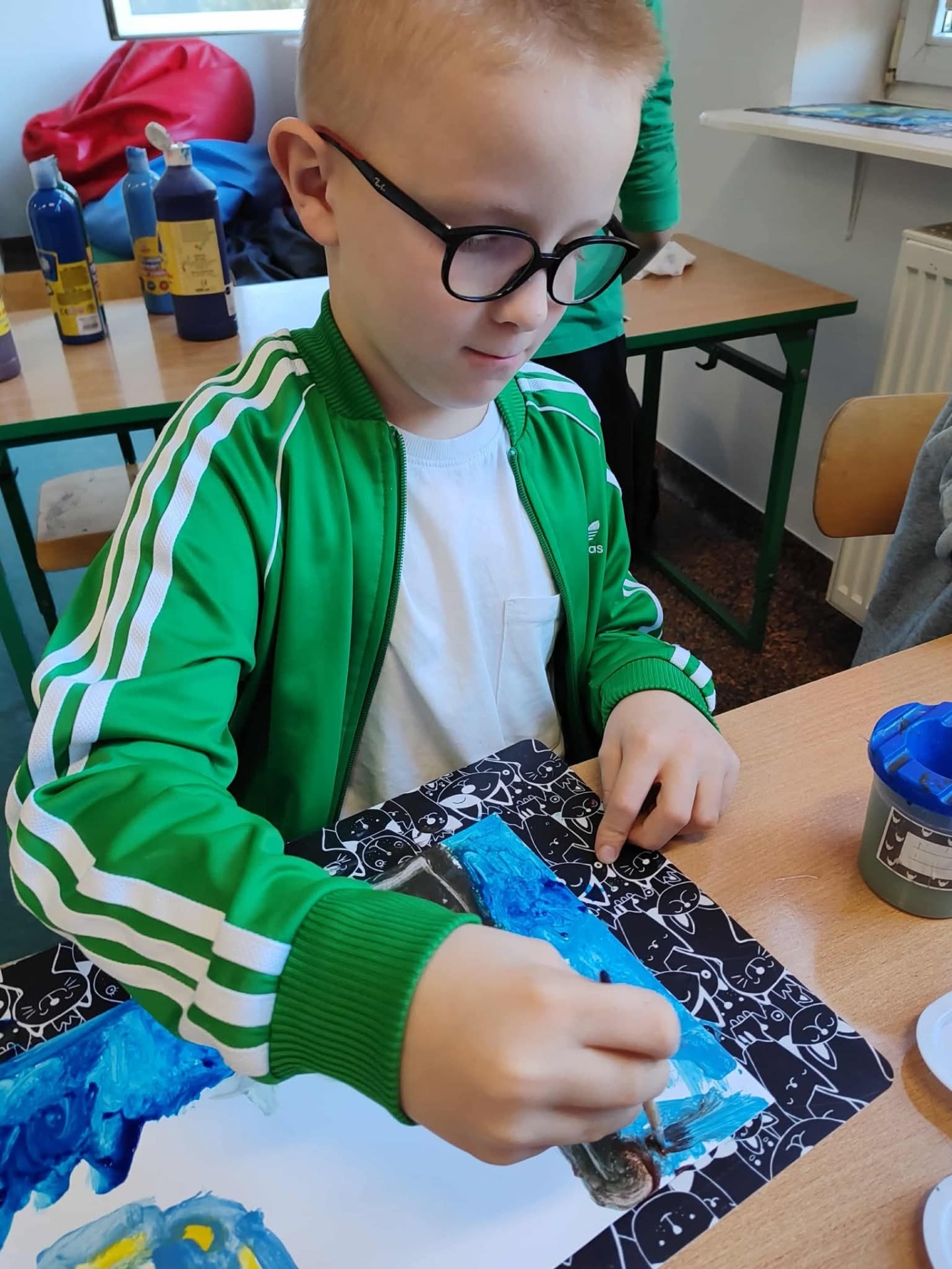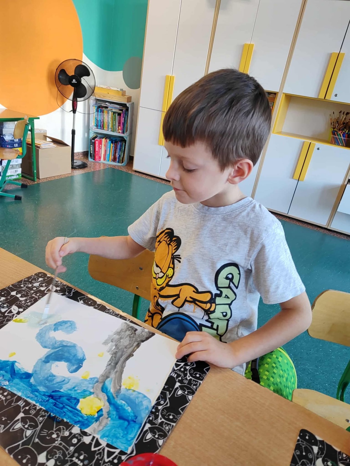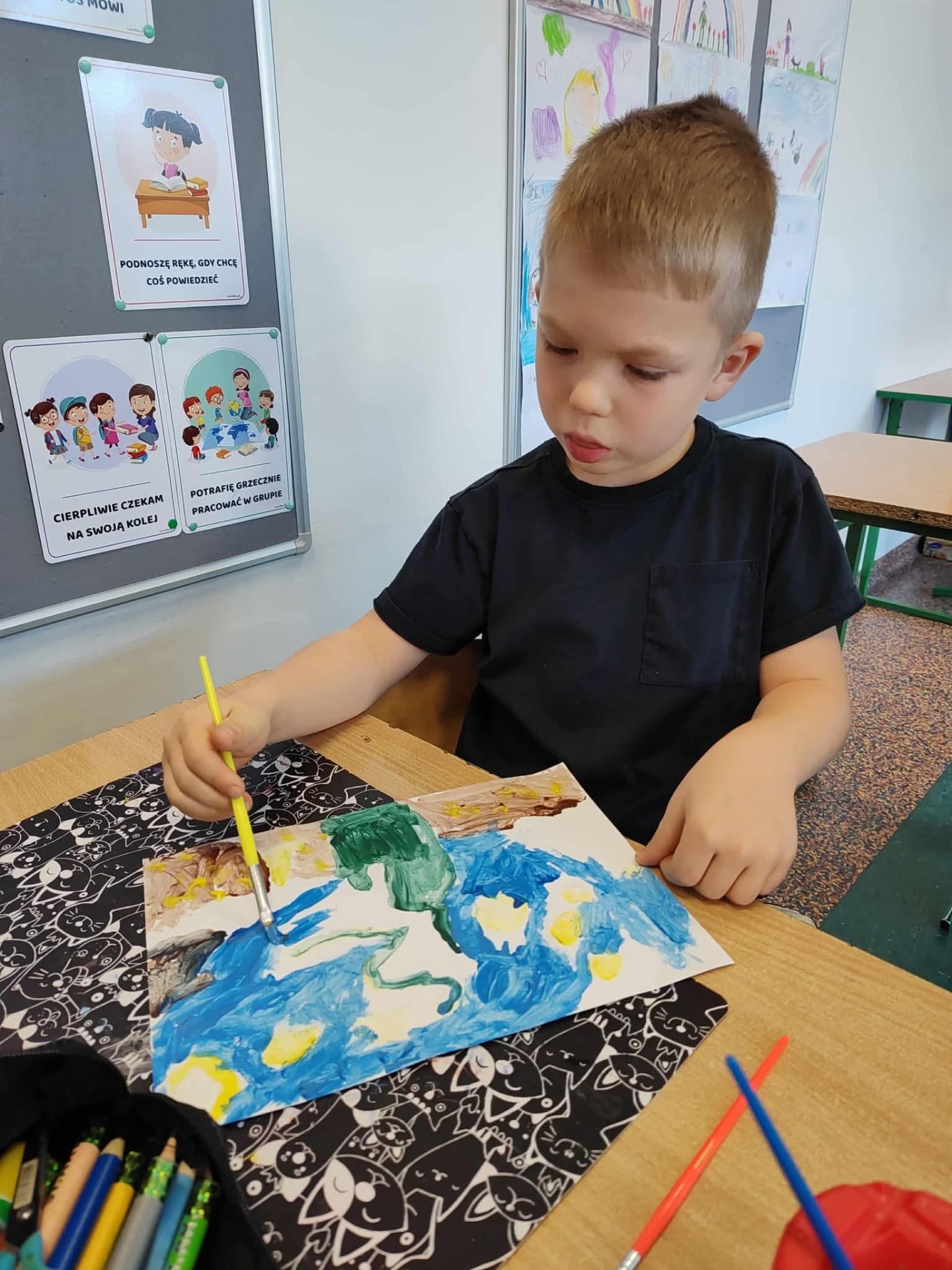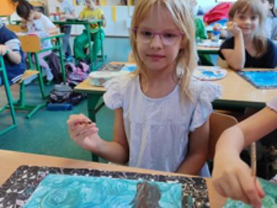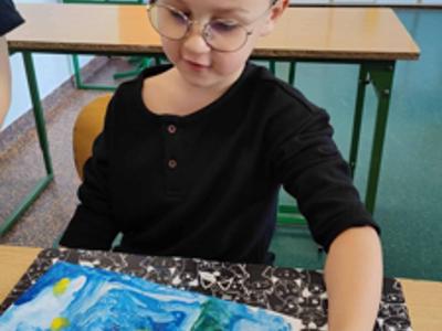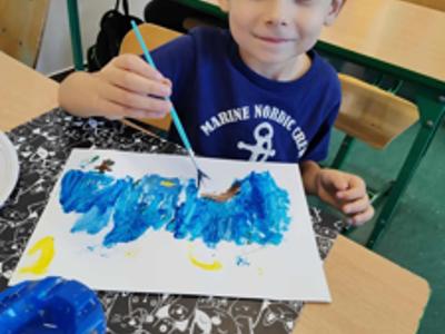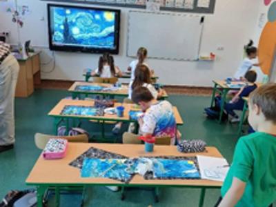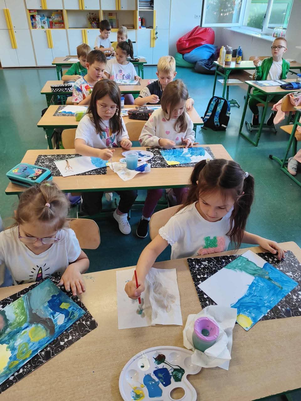 Spotkania ze sztuką w klasie 1f to codzienne zajęcia podczas których uczniowie poznają muzykę klasyczną 🎹oraz najwybitniejszych malarzy 🎨🖌️. A czy można namalować pracę inspirowaną obrazem Van Gogha " Gwieździsta noc" słuchając Chopina Nocturne op 9 no 2 😉?