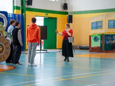 W kolejnych scenach uczestniczyliśmy w barwnym posiedzeniu rady pedagogicznej, która debatowała nad zmianą patrona szkoły. Z humorem i dystansem poznaliśmy kulisy decyzji, która doprowadziła do nadania szkole imienia Józefa Wybickiego — twórcy „Mazurka Dąbrowskiego”. W tej części podróży nie zabrakło także stylizacji na lata 90., szkolnych żartów i wspomnień o końcu epoki PRL-u.