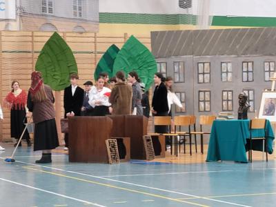 Za sprawą głównych bohaterów spektaklu — uczniów, którzy skonstruowali wehikuł czasu — przenieśliśmy się do roku 1935, by być świadkami uroczystego otwarcia szkoły i pierwszych lekcji w przedwojennej klasie. Następnie trafiliśmy w lata sześćdziesiąte, kiedy placówka nosiła imię Nadieżdy Krupskiej, a pochodom pierwszomajowym towarzyszyły pieśni o młodzieży świata i ideałach socjalizmu.