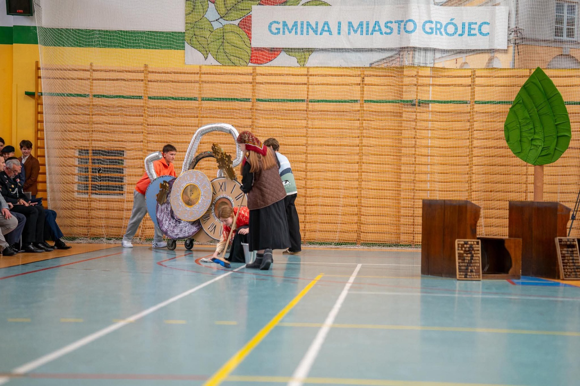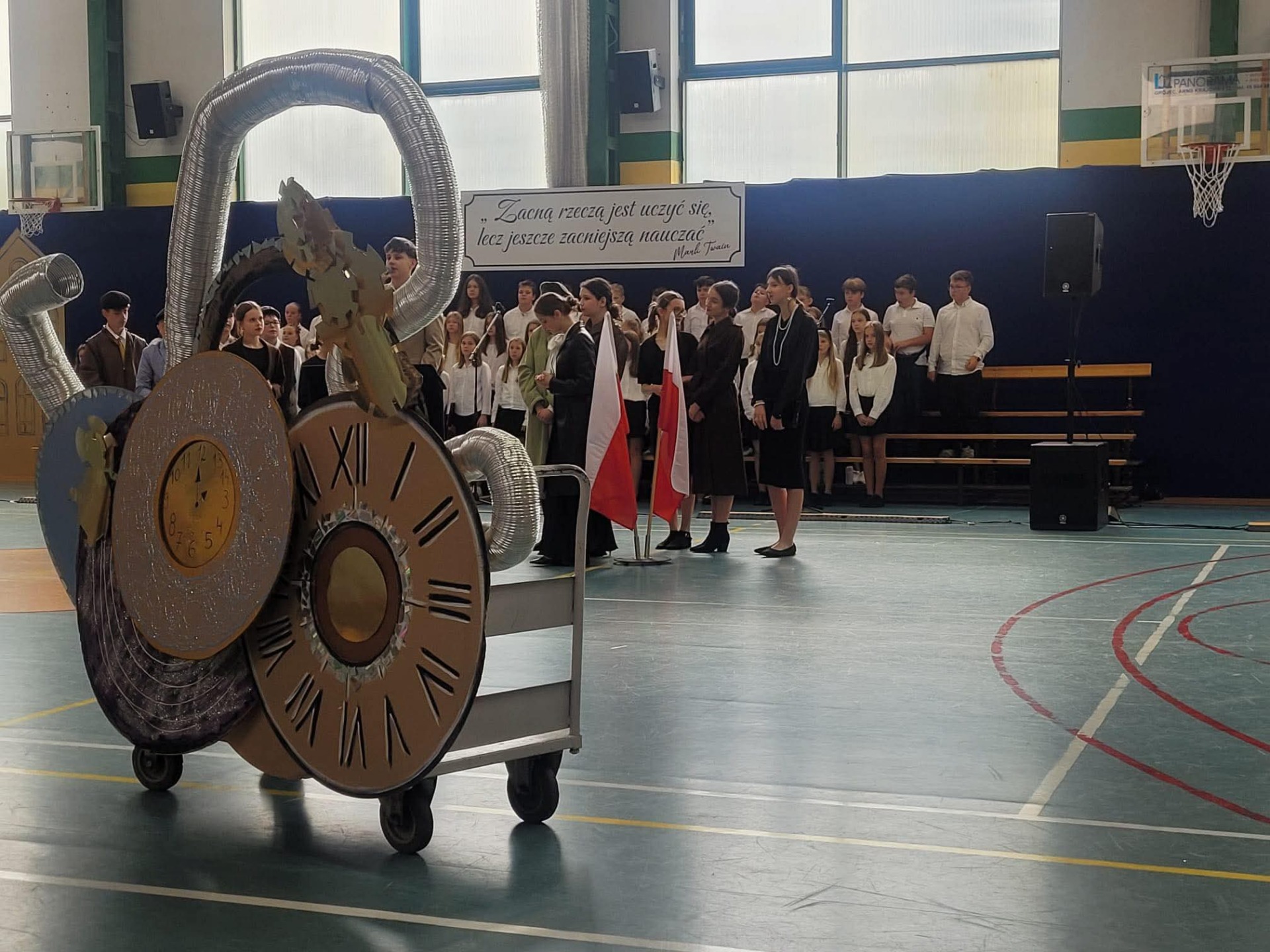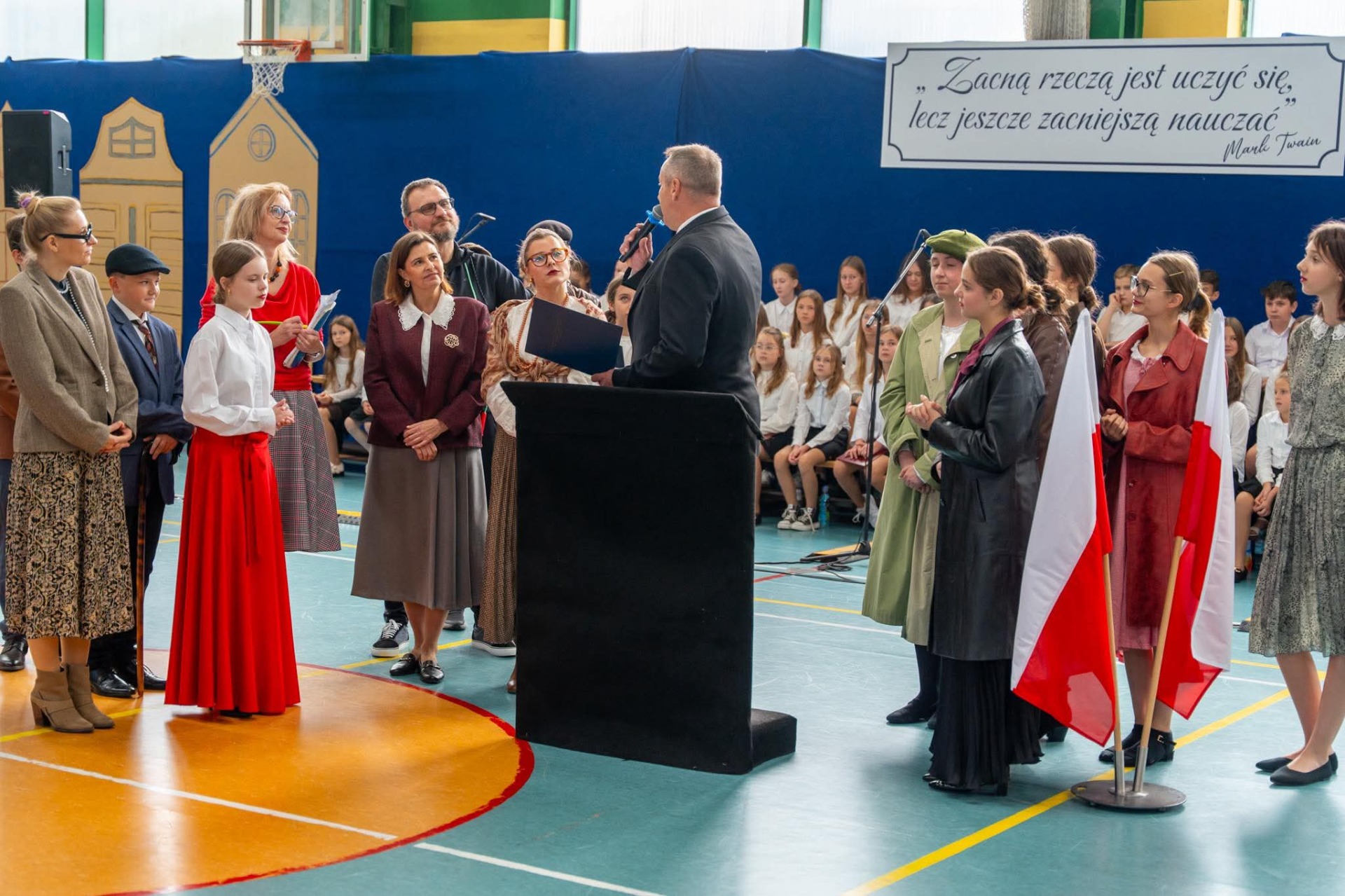 Za scenariusz i reżyserię odpowiadały panie Małgorzata Bińkowska oraz Magdalena Czerwaty, które z niezwykłą wrażliwością i wyobraźnią poprowadziły nas przez kolejne dekady historii szkoły. Oprawę muzyczną zapewnił chór Publicznej Szkoły Podstawowej nr 2 w Grójcu pod kierunkiem pani Małgorzaty Żabińskiej, a scenografię przygotowały panie Luiza Madej i Kamila Gabler, tworząc przestrzeń, w której przeszłość ożyła na naszych oczach.