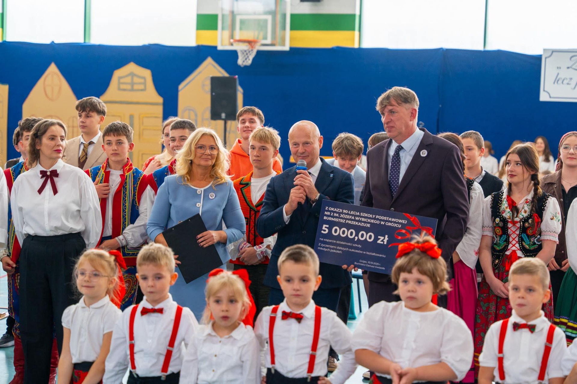 Głos w trakcie uroczystości zabrał również Burmistrz Gminy i Miasta Grójec pan Dariusz Gwiazda, który gratulując tak zaszczytnego jubileuszu, przekazał Dwójkowej społeczności voucher w wysokości 5000 złotych .