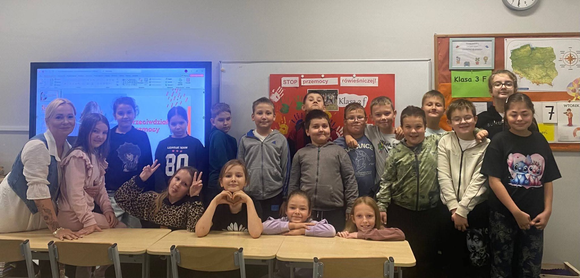 W ramach tygodnia „Przeciwdziałania przemocy rówieśniczej” uczniowie klasy 3f wzięli udział w zajęciach prowadzonych przez panią pedagog - Annę Słobodzin-Cąderek pod hasłem „Przeciwdziałanie przemocy!” Klasa 3f uczestniczyła również w zajęciach o tej samej tematyce w Bibliotece Pedagogicznej w Grójcu. Wszystkie to działania zwiększyły świadomości dzieci na ten trudny temat. Dziękujemy bardzo👌!