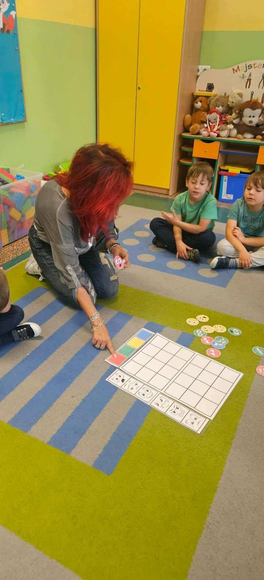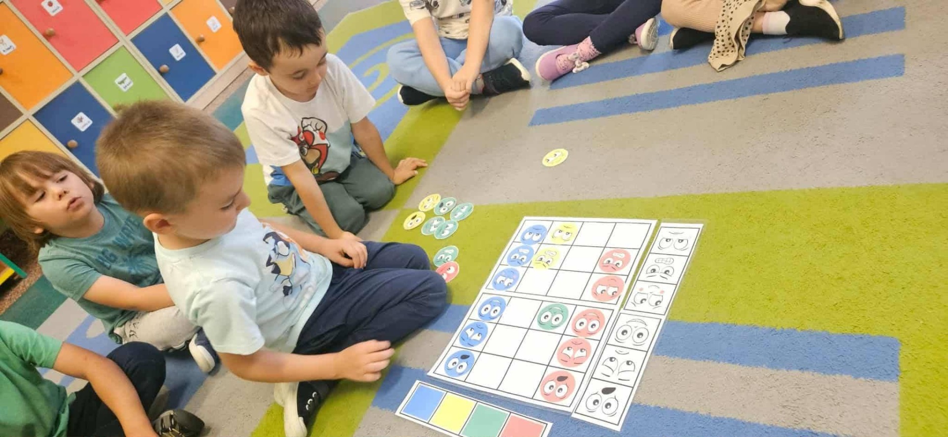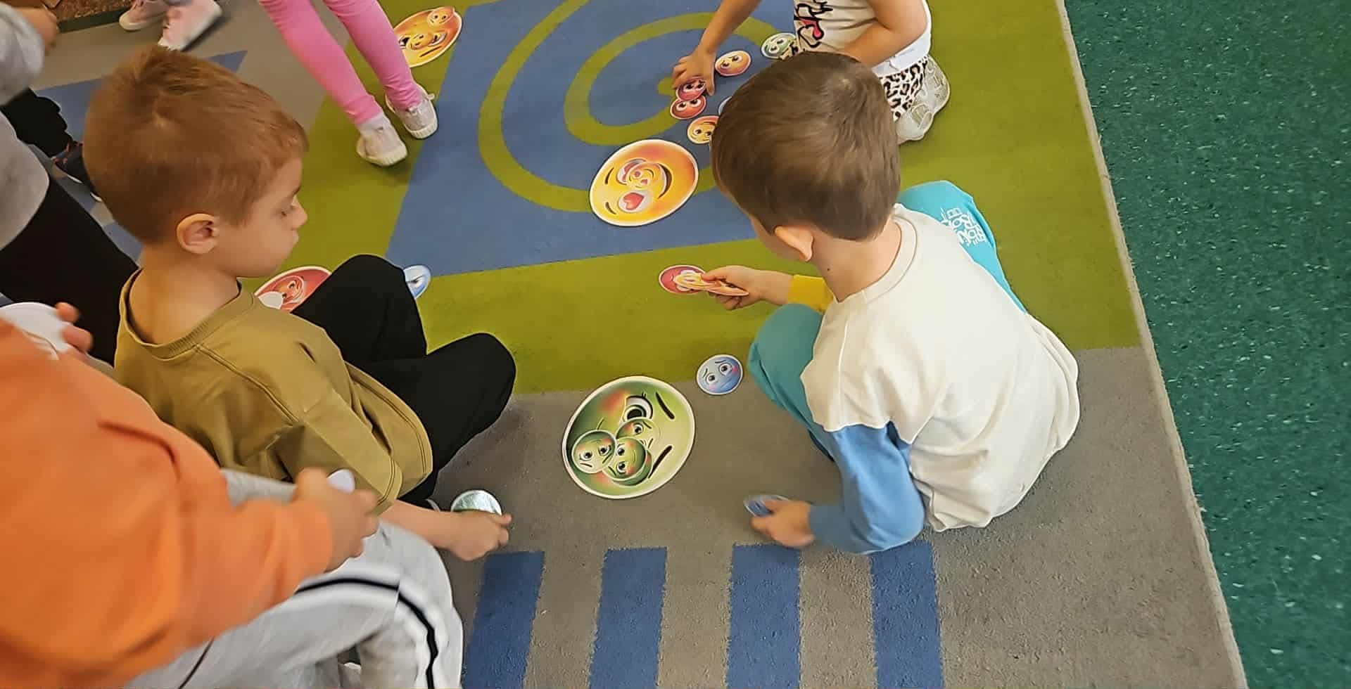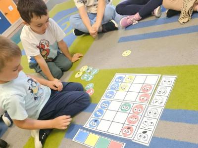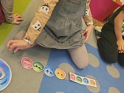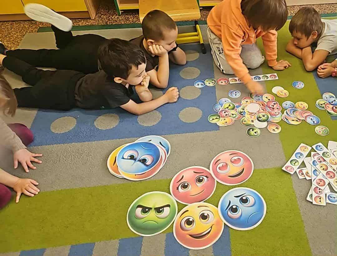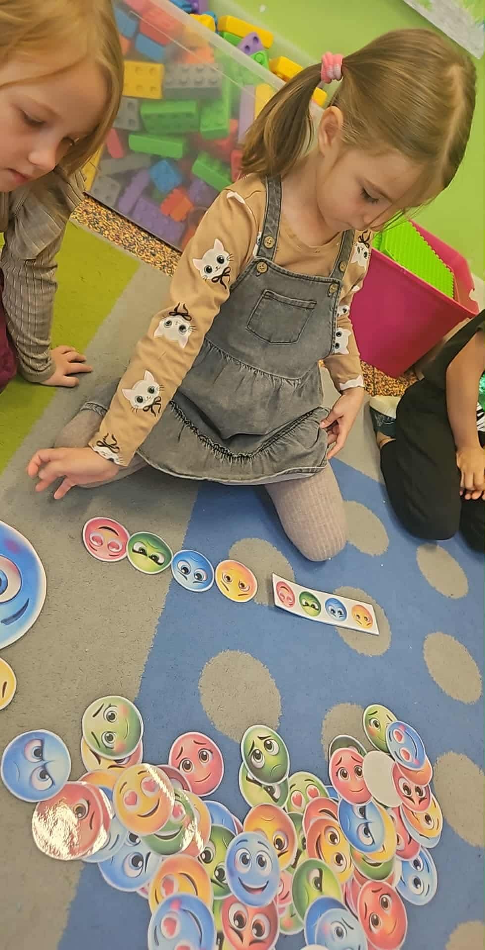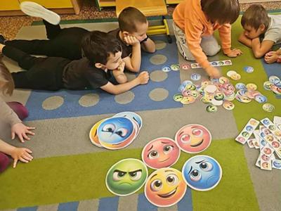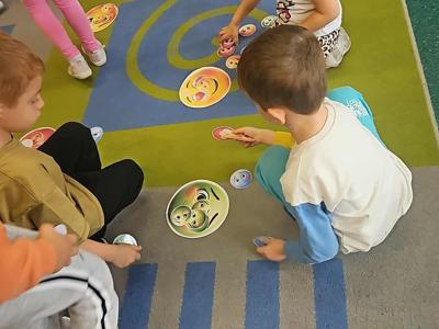 W atmosferze akceptacji i bezpieczeństwa brały udział w wielu grach i zajęciach związanych z emocjami - odpowiadały na pytania o emocjach wyrzucane kostką, układały sekwencje emocji, klasyfikowały emocje w odpowiednie zbiory oraz kodowały emocje.