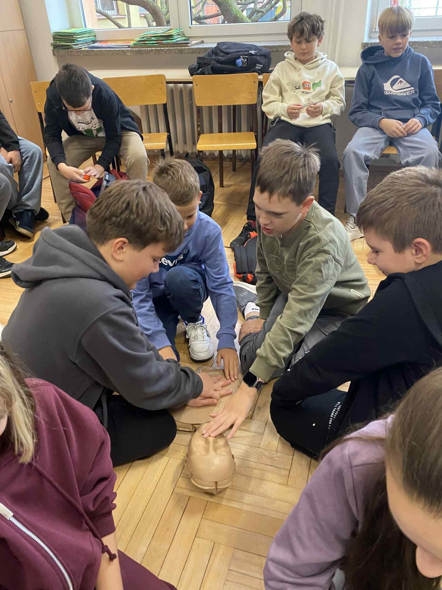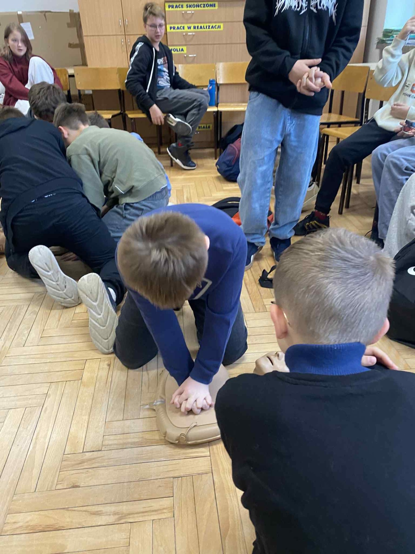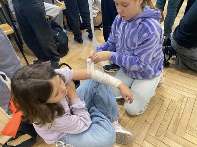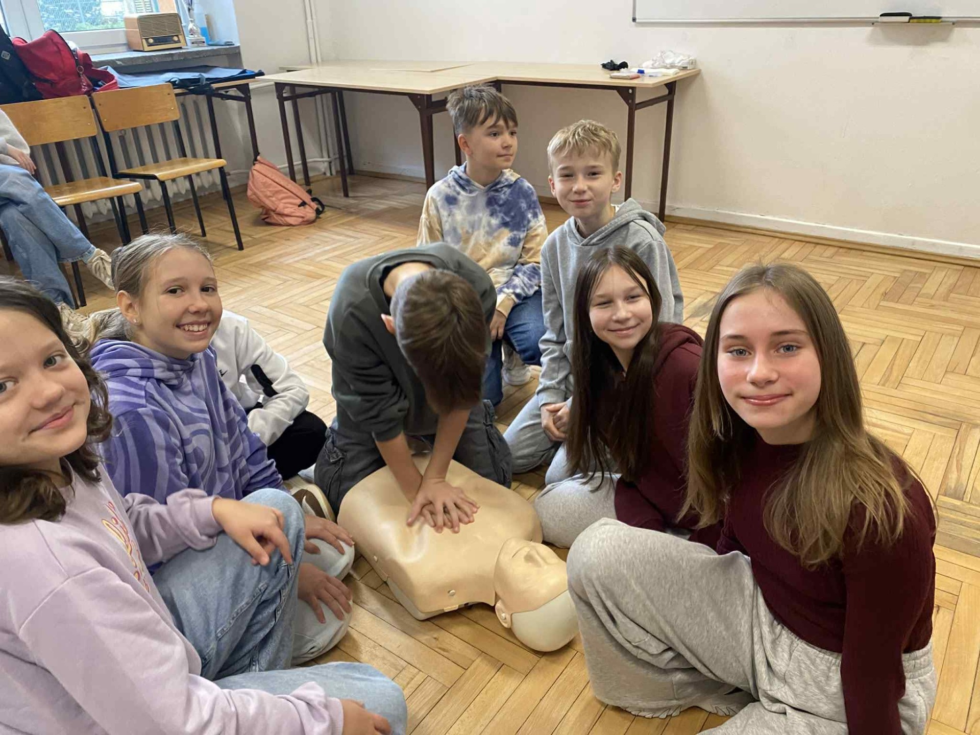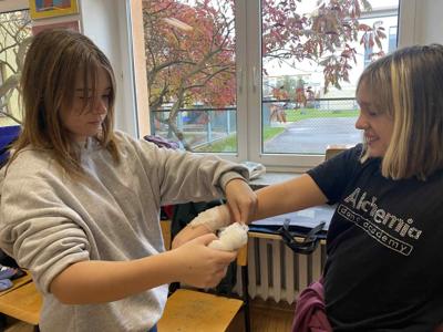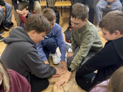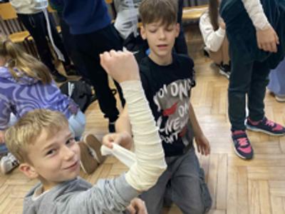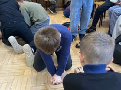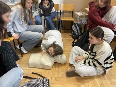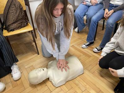Podczas zajęć piątoklasiści nauczyli się, jak reagować w sytuacjach zagrożenia, jak udzielić pomocy przy skaleczeniach czy omdleniach, a także jak poprawnie wykonać resuscytację krążeniowo-oddechową.