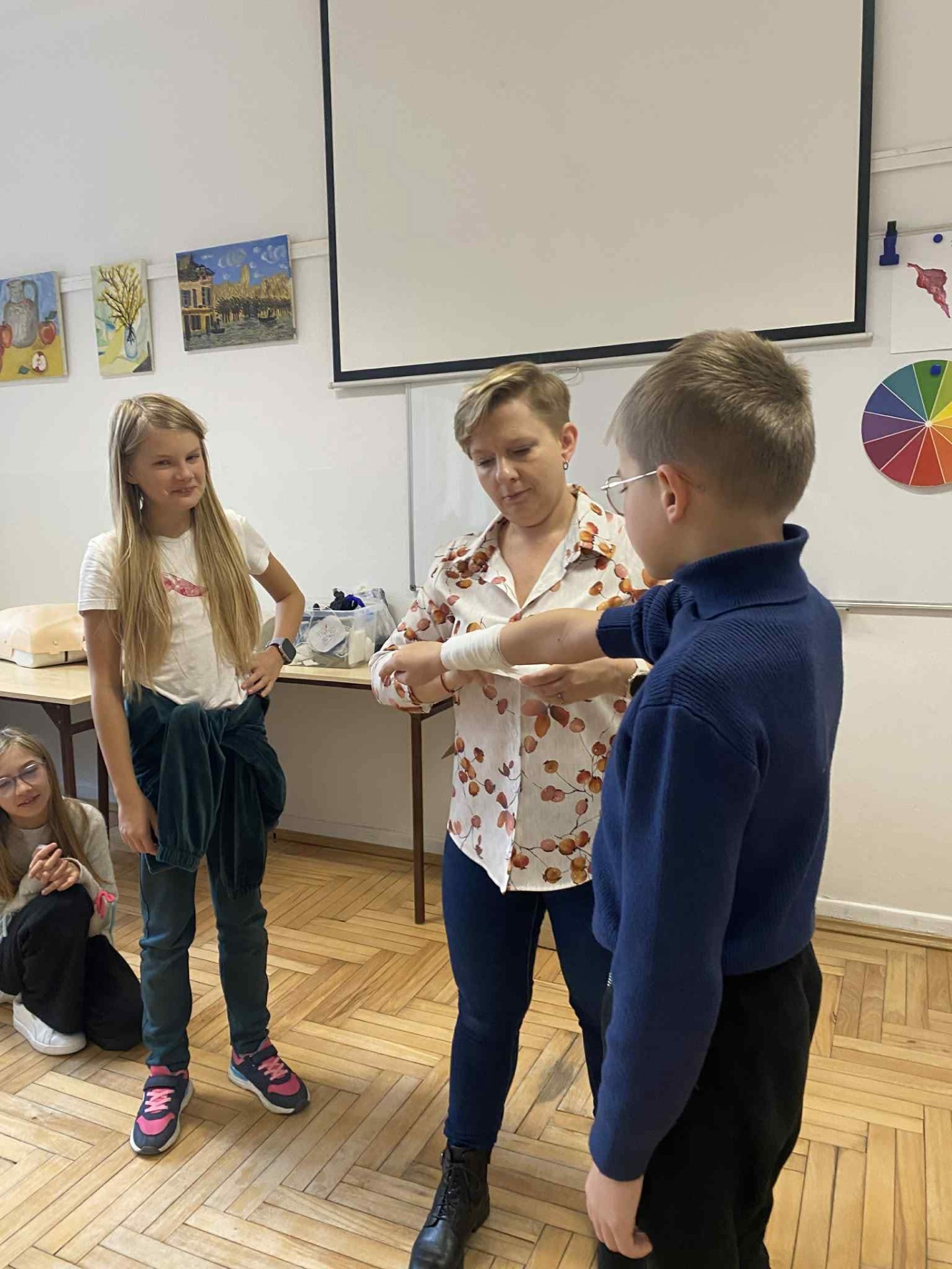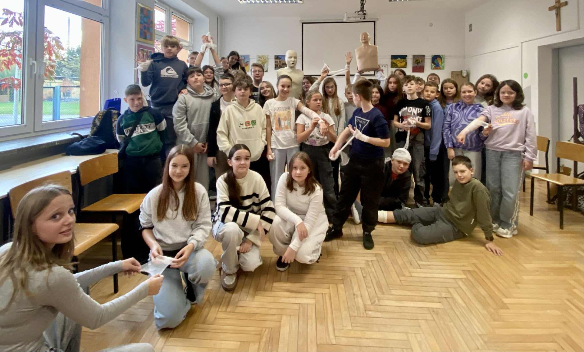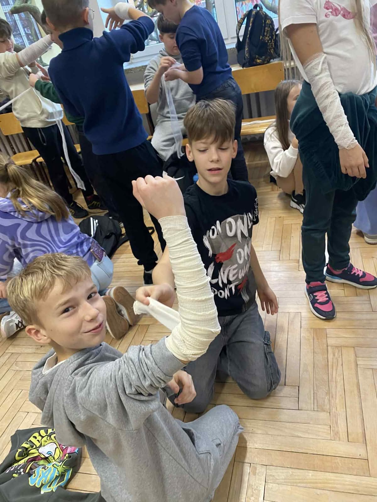 Podczas zajęć piątoklasiści nauczyli się, jak reagować w sytuacjach zagrożenia, jak udzielić pomocy przy skaleczeniach czy omdleniach, a także jak poprawnie wykonać resuscytację krążeniowo-oddechową.