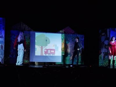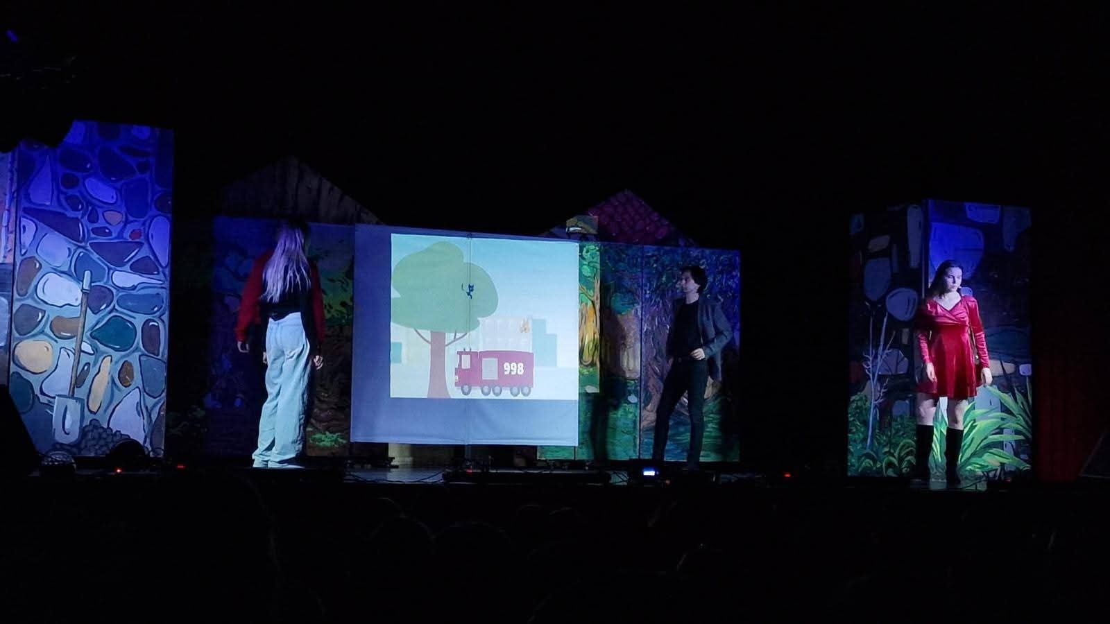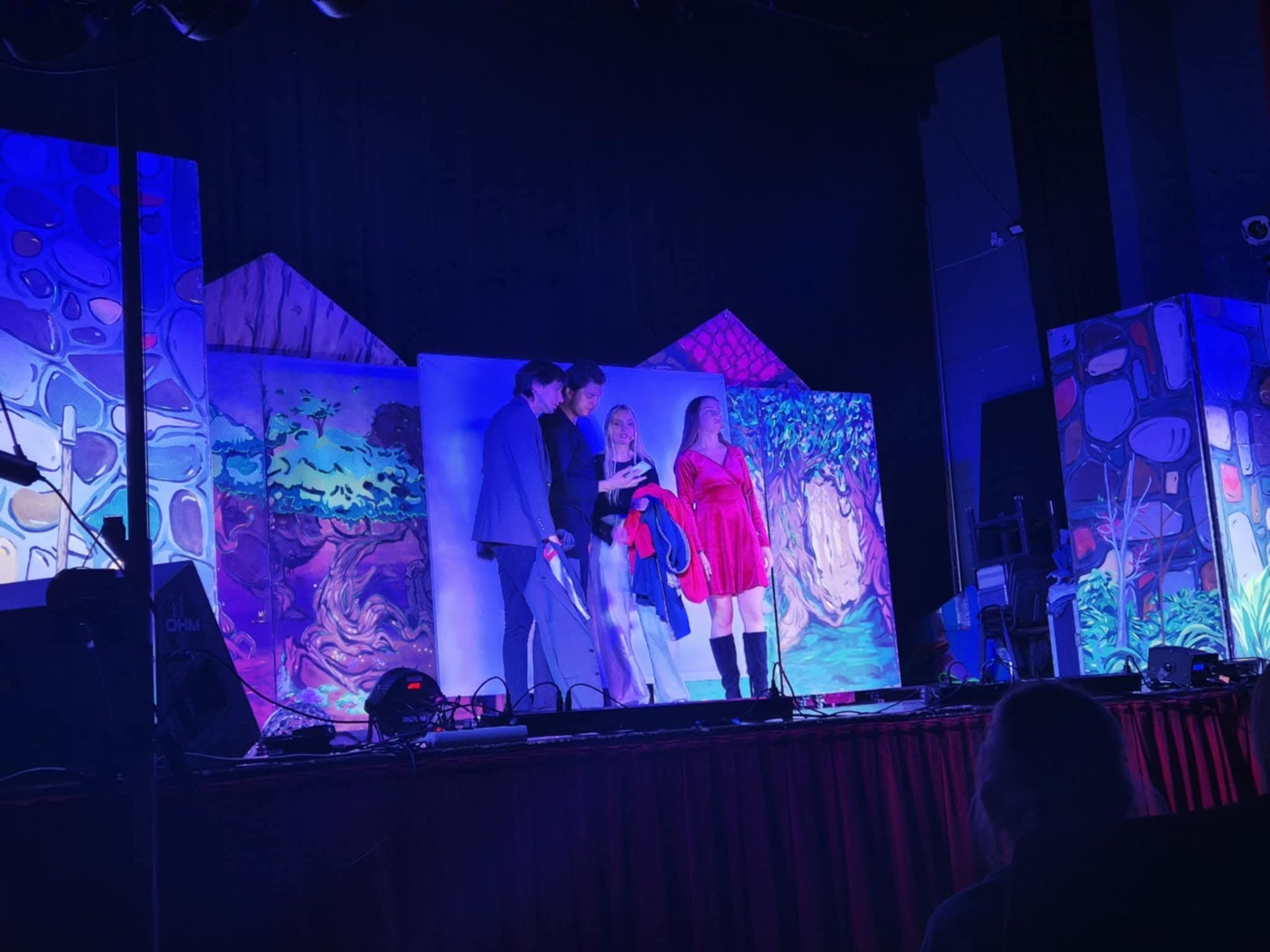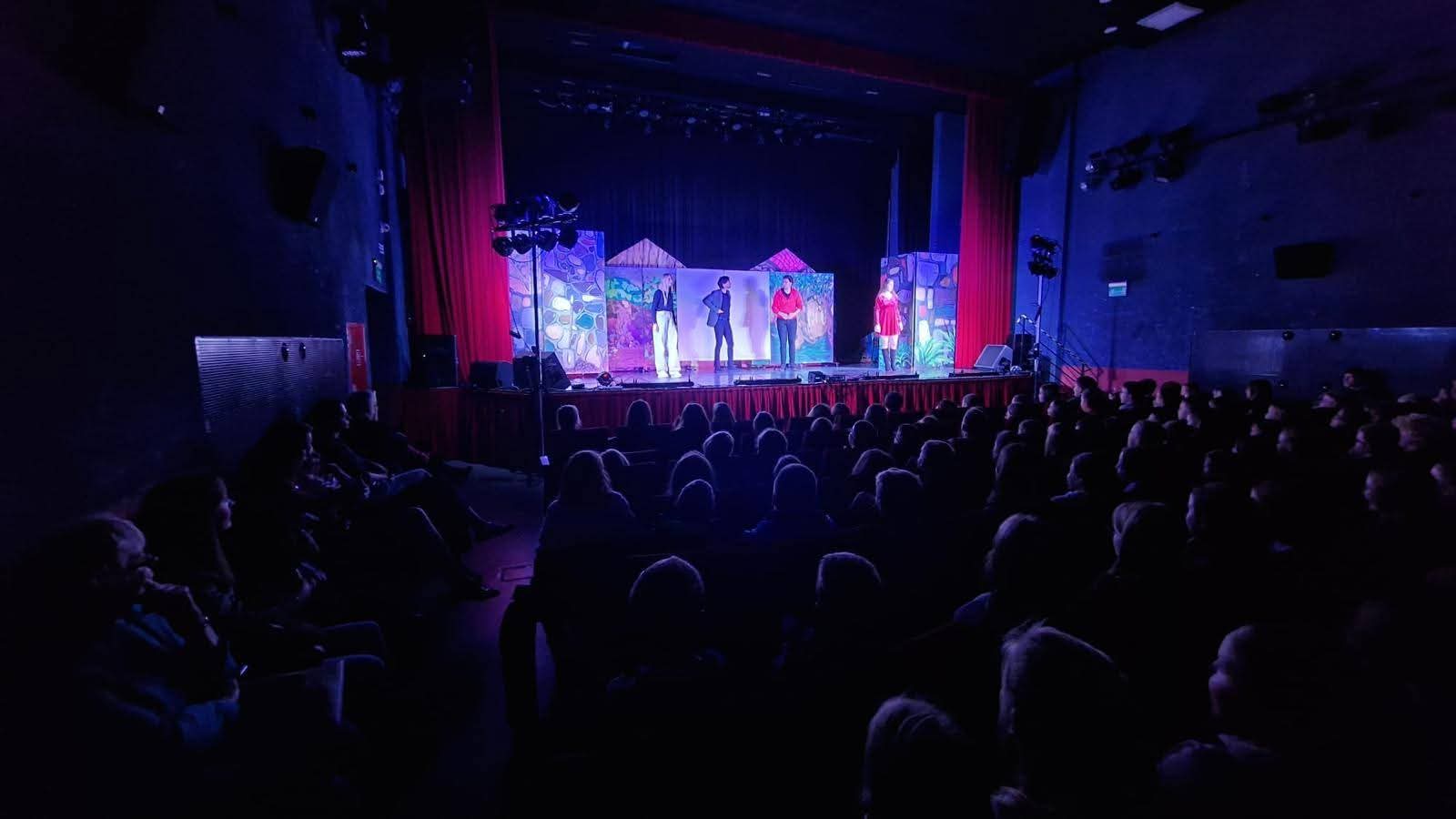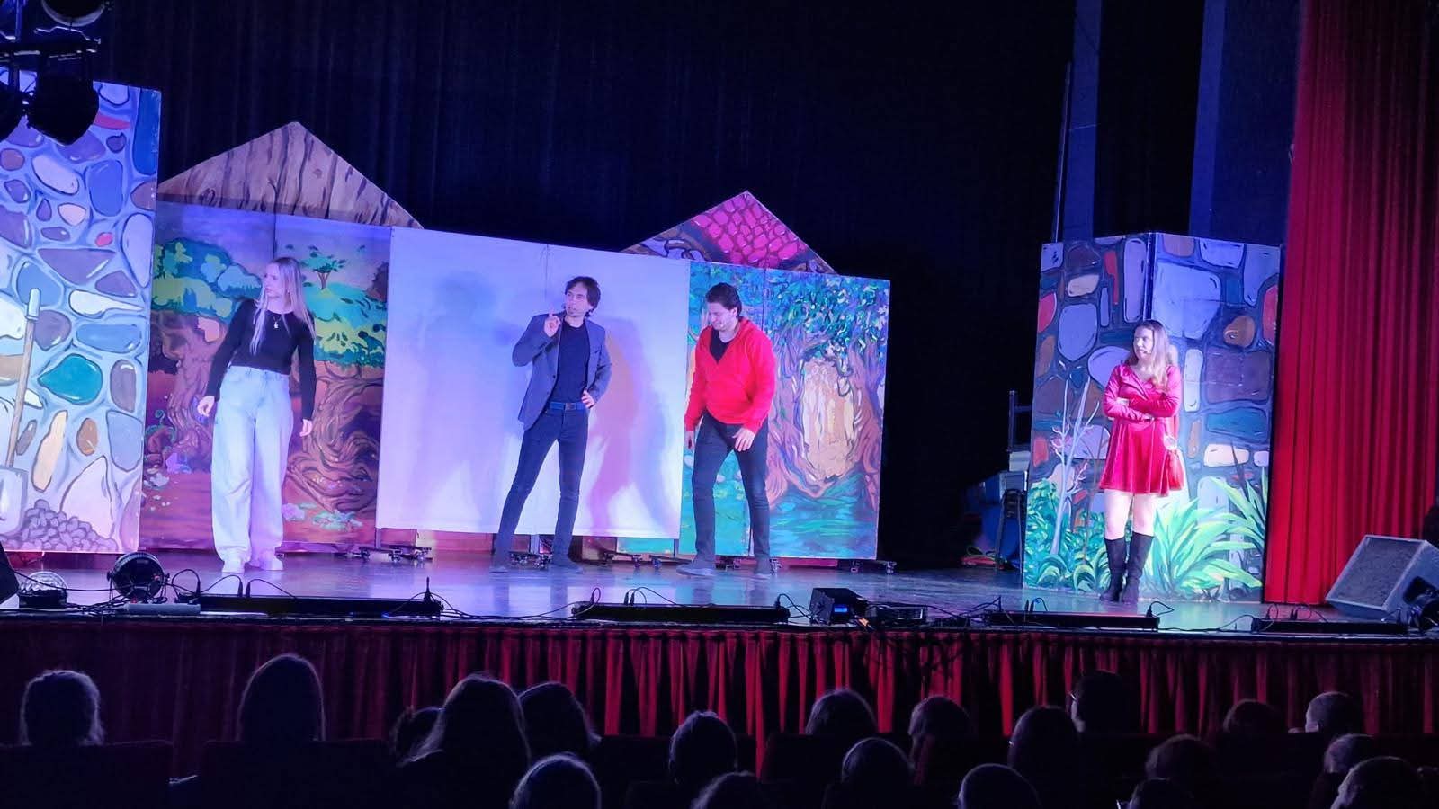 Przedstawienie opowiadało o czwórce młodych ludzi, którzy trafiają do escape roomu. Aby się z niego wydostać, muszą odtworzyć znane sceny filmowe w wersji teatralnej. Widzowie mieli okazję zobaczyć interpretacje scen z takich dzieł jak „Opowieści z Narnii”, „Harry Potter”, „Władca Pierścieni”, „Hamlet” czy „Romeo i Julia”. Spektakl w ciekawy sposób zachęcał do refleksji nad tym, czym różni się kino od teatru, jakimi środkami wyrazu posługuje się każda z tych sztuk i jaka jest ich specyfika😊. Dla uczniów była to nie tylko artystyczna przygoda, ale także świetna okazja do rozmowy o sztuce, emocjach i interpretacji znanych motywów literackich i filmowych👍.