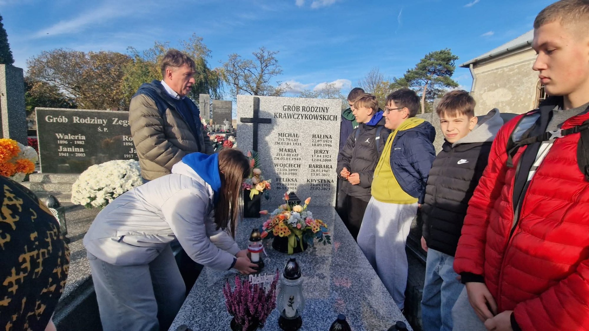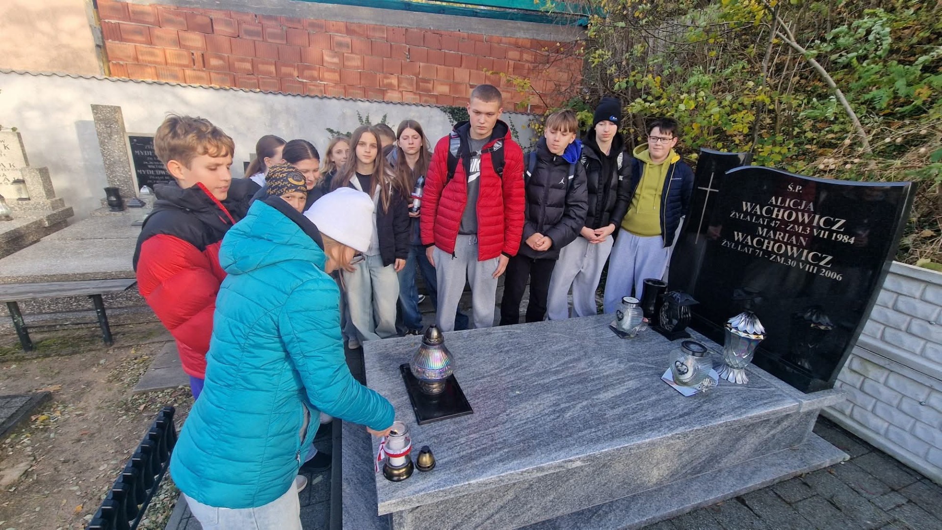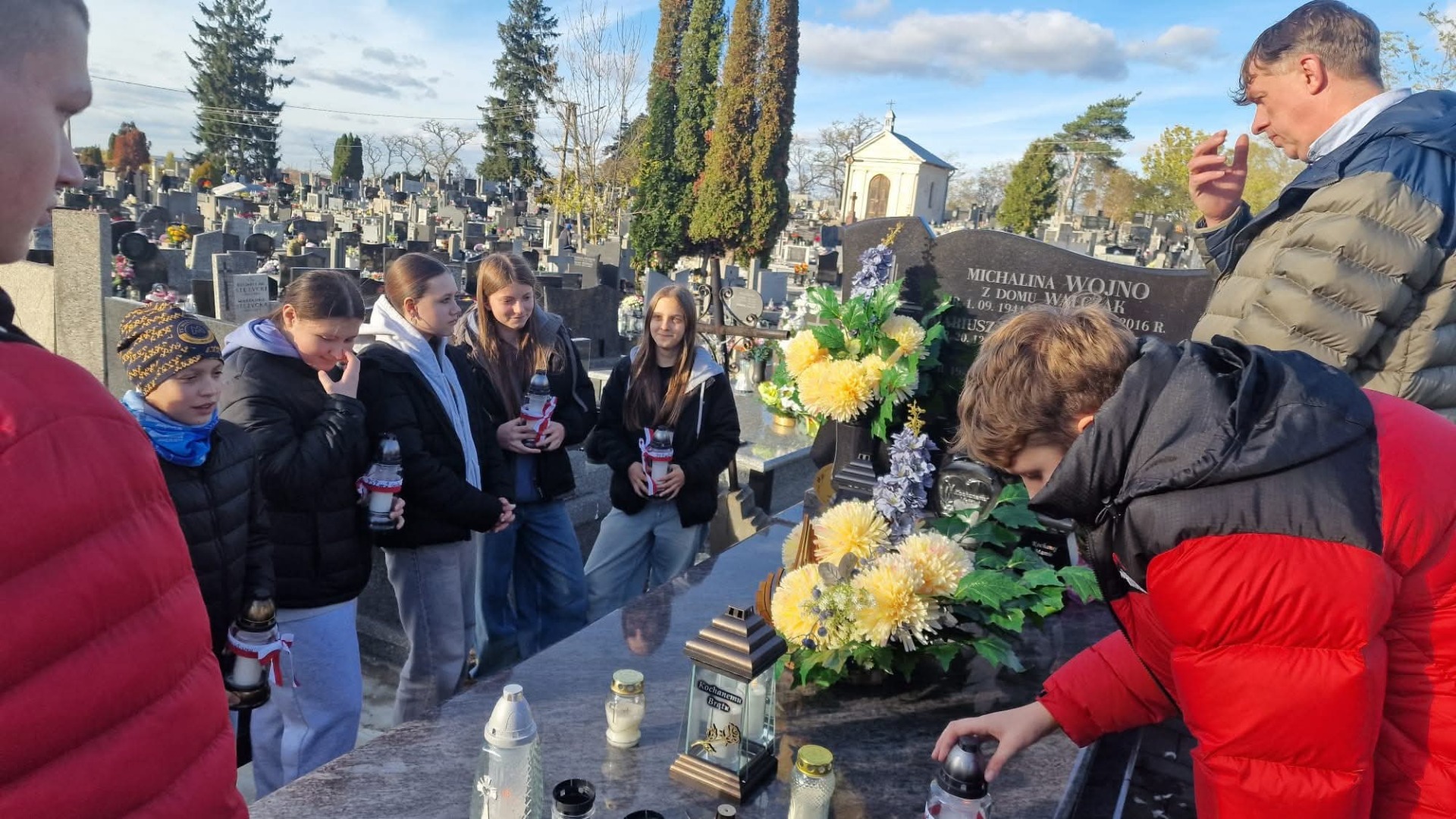 Dzisiaj dyrektor Dariusz Fijałkowski wraz z wicedyrektor Anetą Senator i uczniami klasy 7a odwiedzili lokalne cmentarze, by uczcić pamięć zmarłych nauczycieli, pedagogów oraz pracowników szkoły.
