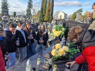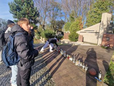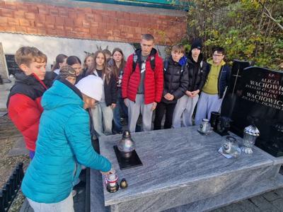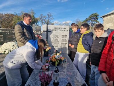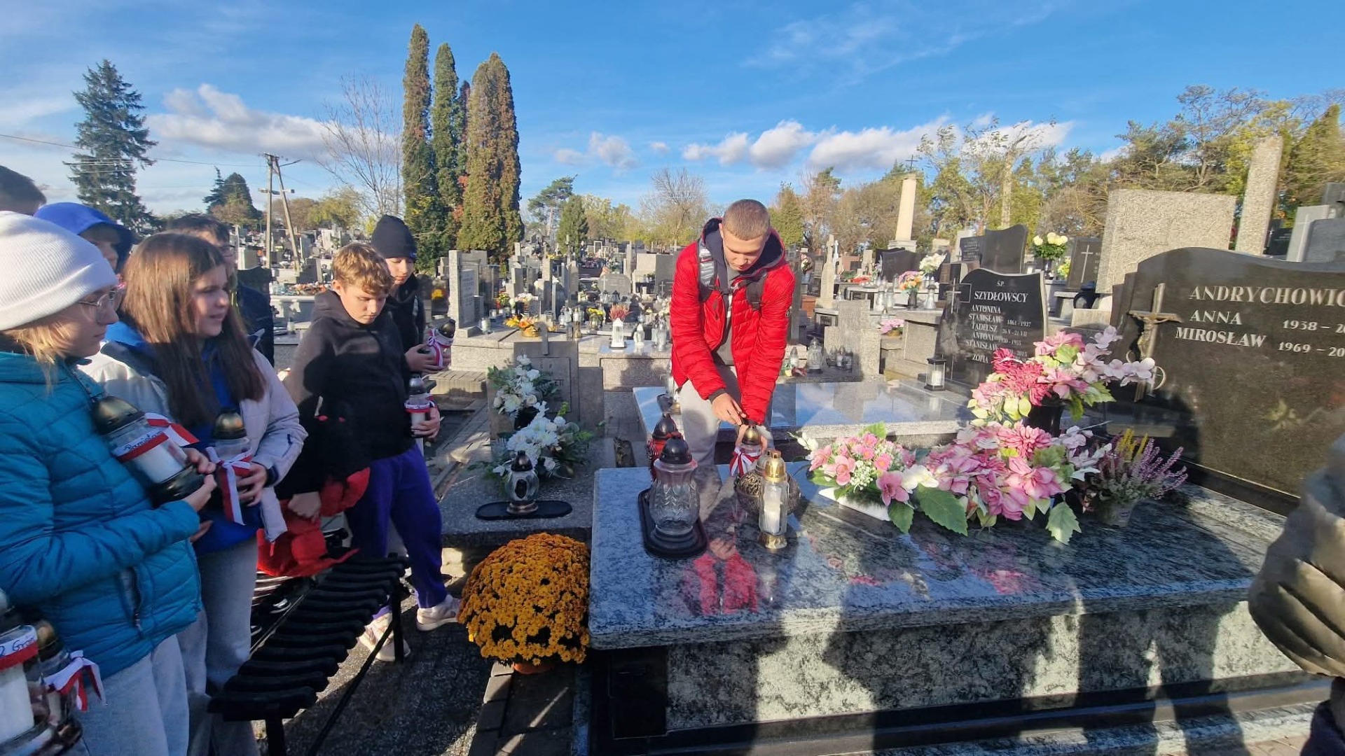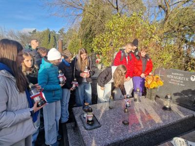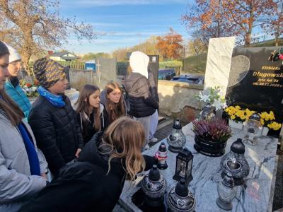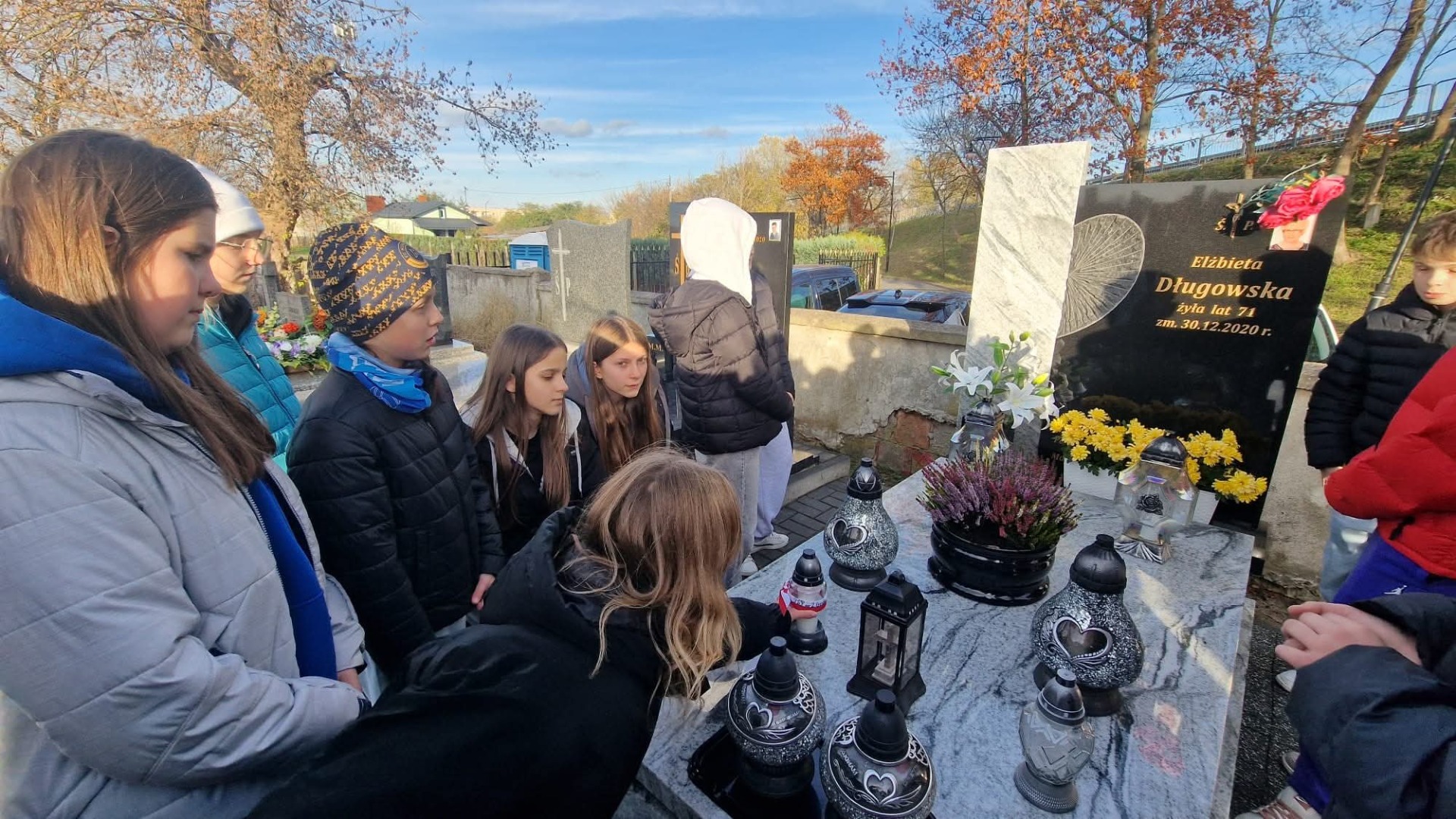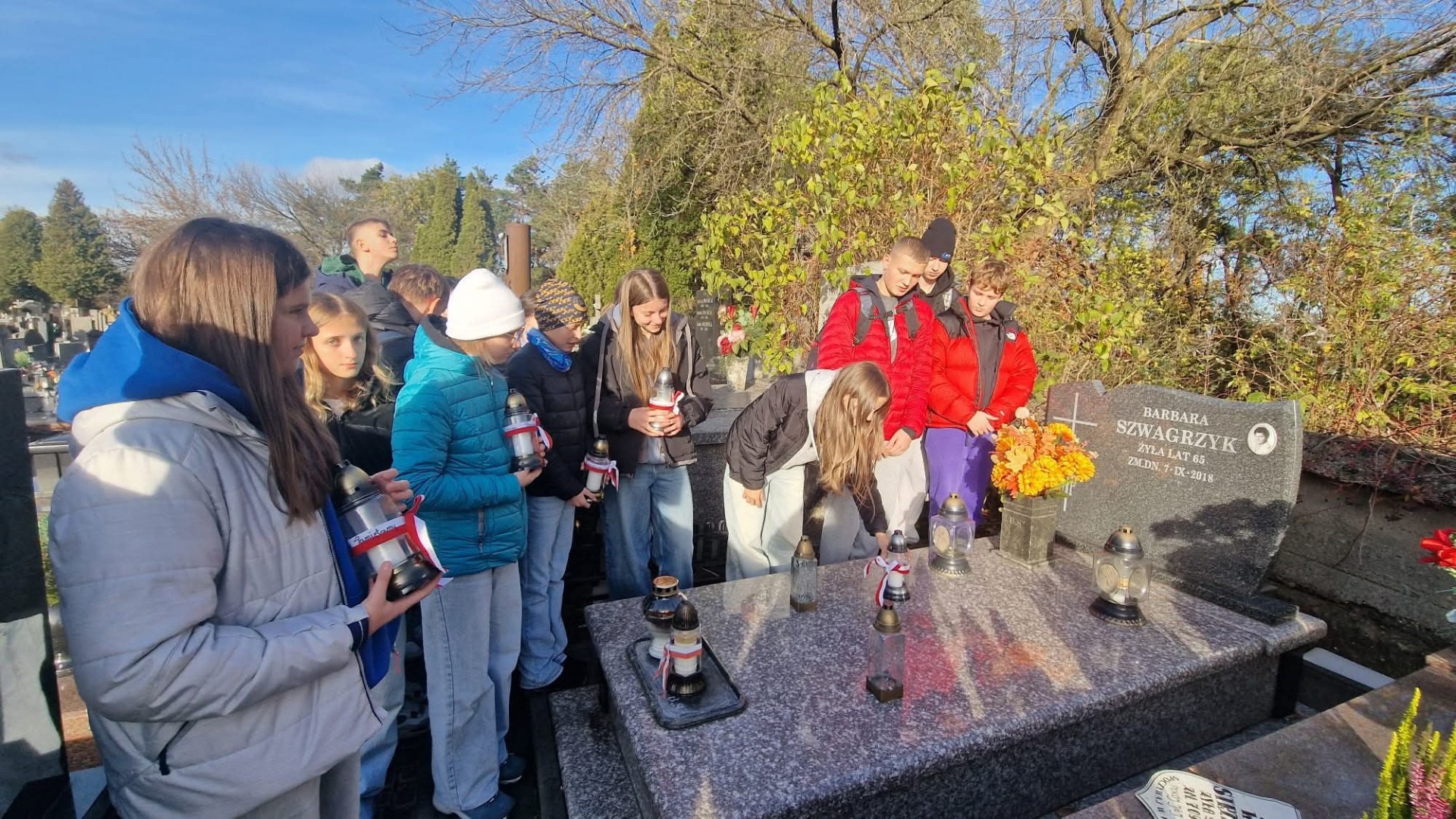 Dzisiaj dyrektor Dariusz Fijałkowski wraz z wicedyrektor Anetą Senator i uczniami klasy 7a odwiedzili lokalne cmentarze, by uczcić pamięć zmarłych nauczycieli, pedagogów oraz pracowników szkoły.