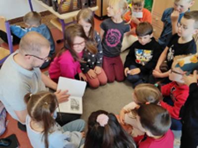 Zwieńczeniem spotkania była krótka lekcja rysunku✏️🖍️ oraz bajka🧙 przeczytana przez samego autora 😊. Dziękujemy za niezwykłą lekcje i miło spędzony czas 😀