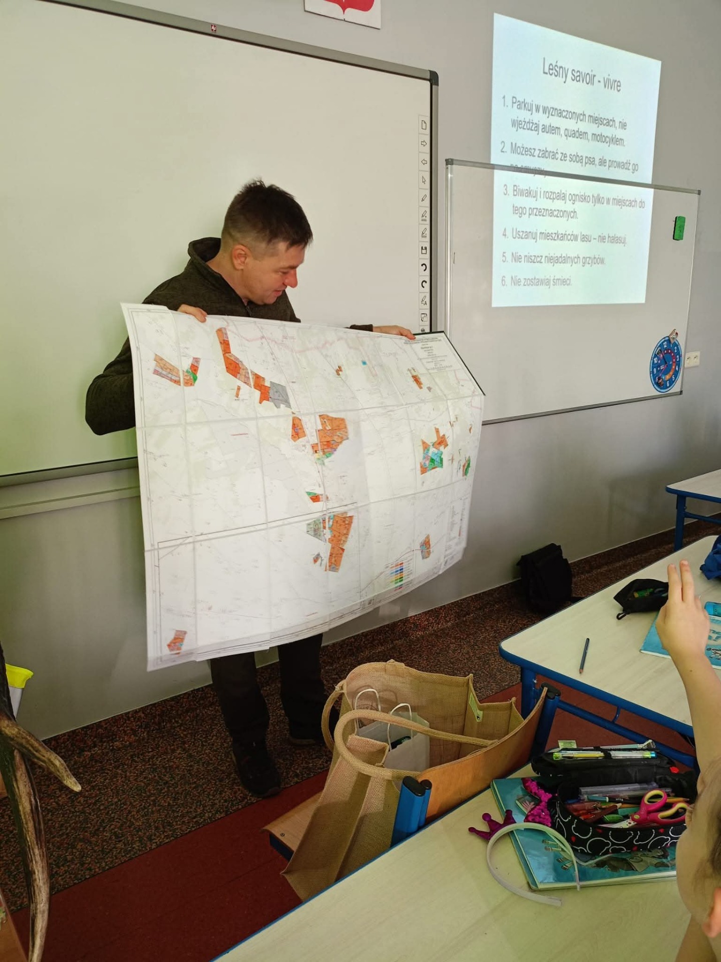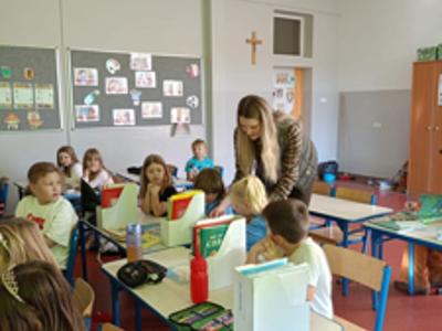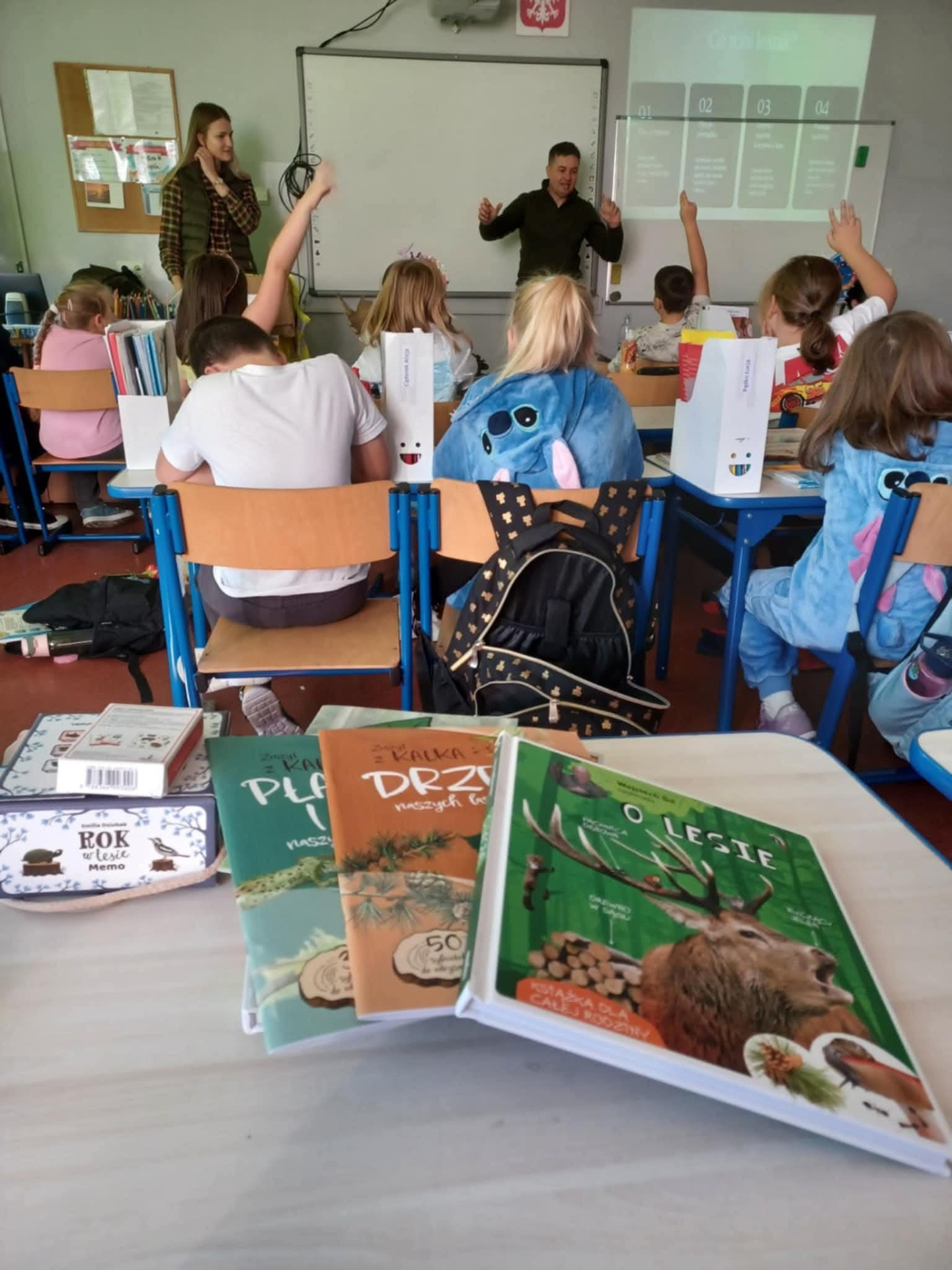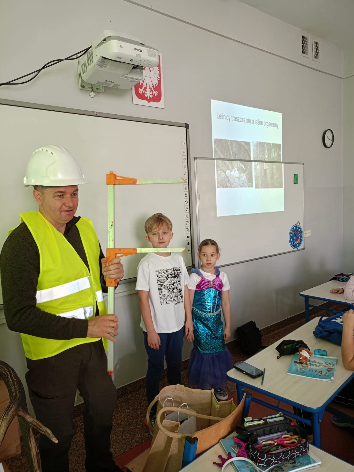 W ramach szkolnego doradztwa zawodowego uczniowie klasy 2c gościli przedstawicieli Nadleśnictwa Grójec - Panią Magdalenę oraz Pana Marcina. Celem zajęć z leśnikiem w szkole było zapoznanie uczniów z pracą leśnika, pokazanie znaczenia lasów dla środowiska oraz nauczenie zasad właściwego zachowania się w lesie i ochrony przyrody. Dzieci dowiedziały się o roli leśnika jako opiekuna lasu i jego mieszkańców, poznały gatunki drzew i zwierząt leśnych, a także dowiedziały się, jak unikać zagrożeń dla lasu, takich jak pożary.