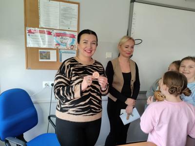 Dodatkowo, pod hasłem „Młodsi sprawdzają czy starsi tabliczkę mnożenia znają” uczniowie mieli okazję sprawdzić wiedzę dorosłych – mieszkańców miasta, rodziców oraz nauczycieli. W wydarzeniu uczestniczyli także pracownicy Powiatowej Poradni Psychologiczno-Pedagogicznej w Grójcu, którzy chętnie podjęli wyzwanie. Dziękujemy za serdeczne przyjęcie i udział w akcji edukacyjnej.
