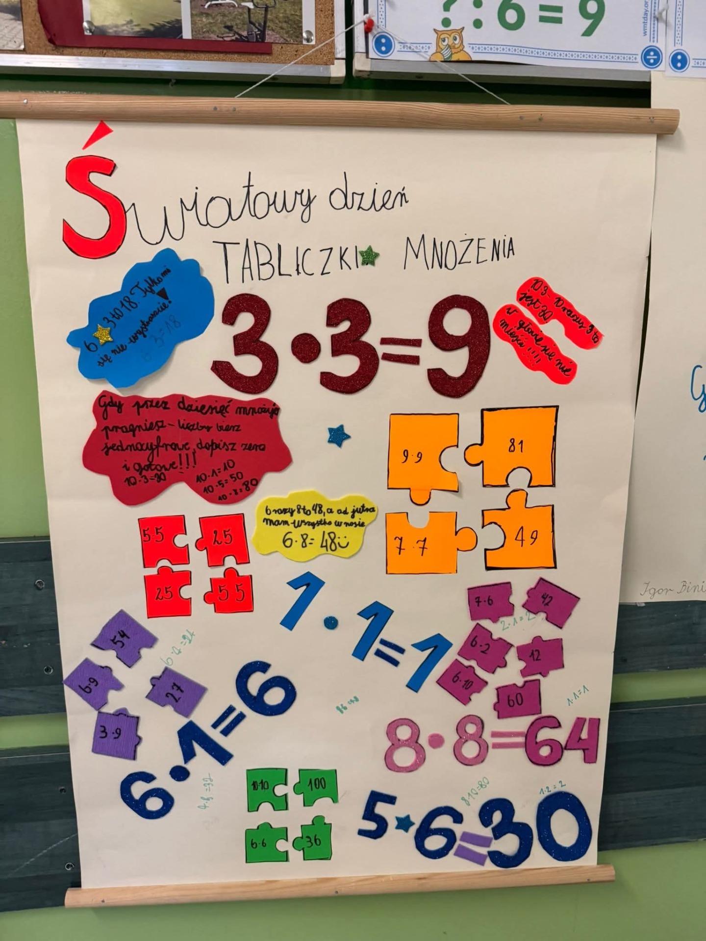 W dniach poprzedzających 21 listopada uczniowie aktywnie przygotowywali się do Światowego Dnia Tabliczki Mnożenia, tworząc plakaty i koszulki promujące tabliczkę mnożenia w formie zabawy. Kulminacyjnym punktem obchodów był egzamin z tabliczki mnożenia dla chętnych uczniów klas trzecich, podczas którego udało się wyłonić wielu Ekspertów Tabliczki Mnożenia.