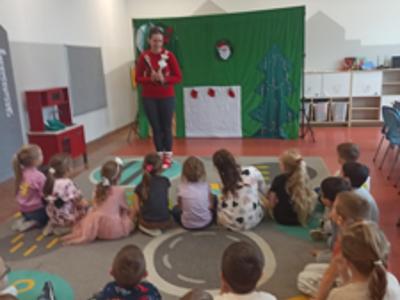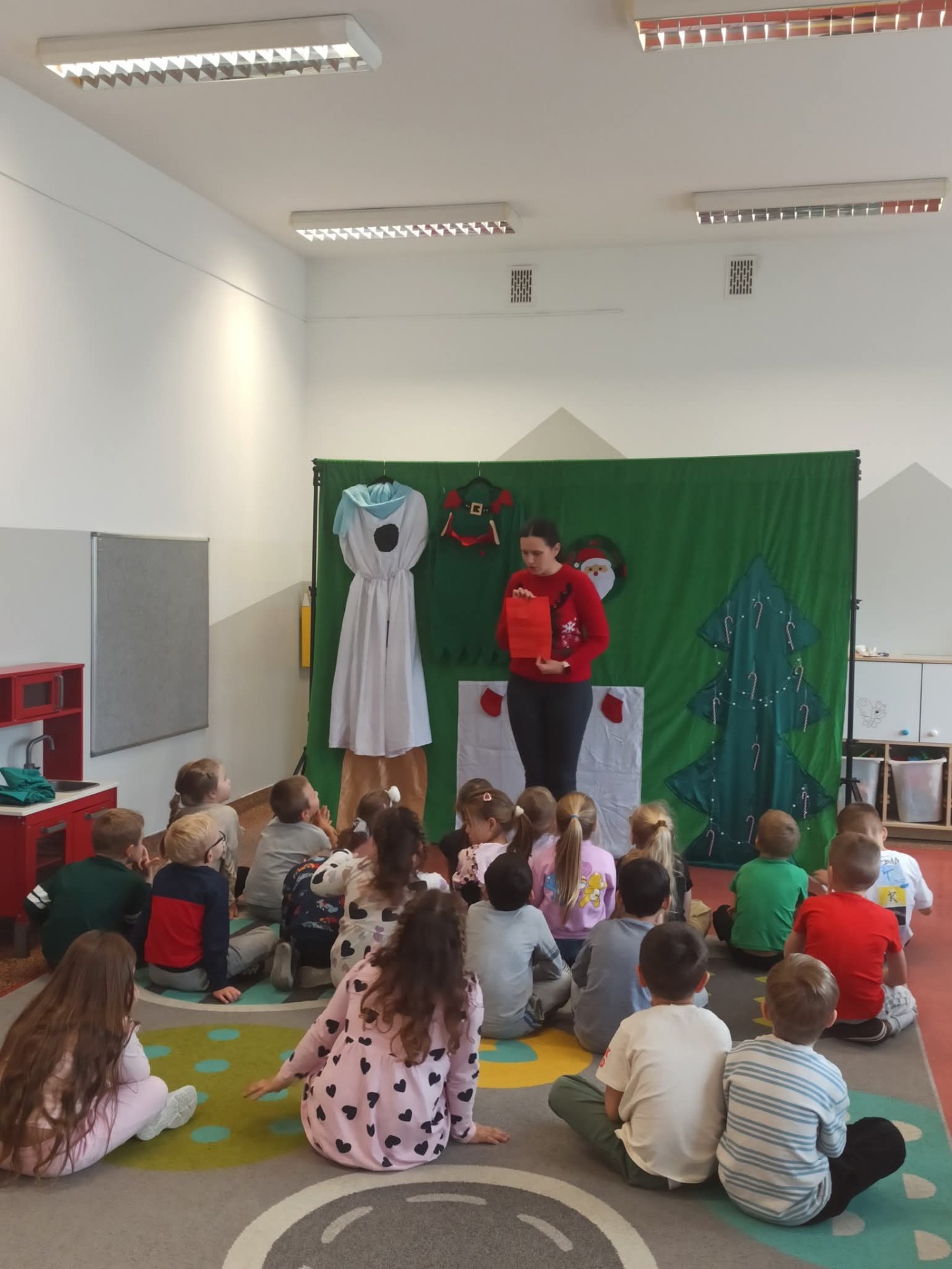 Podczas warsztatów teatralnych dzieci miały okazję poznać tajniki pracy w teatrze. Dzieci dowiedziały się, jak wygląda praca aktorów. Zobaczyly stroje teatralne oraz miały możliwość przymierzyć strój bałwanka ☃️oraz elfa