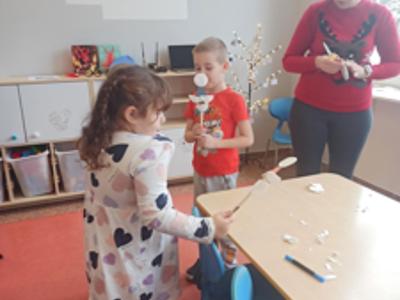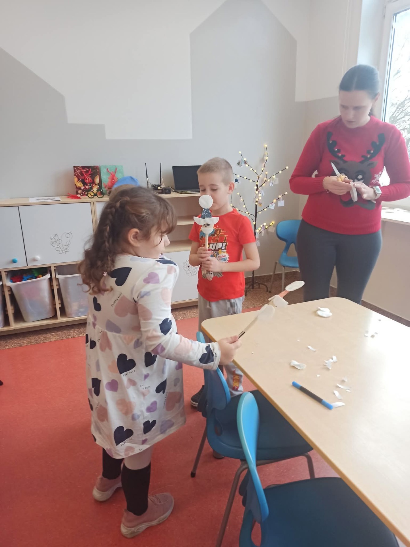 W części praktycznej warsztatów każdy uczestnik wykonał własną pacynkę, używając drewnianych łyżek, materiałów i kolorowych dodatków. Powstałe kukiełki posłużyły następnie do krótkich zabaw teatralnych, podczas których dzieci mogły spróbować swoich sił jako aktorzy lalkowi.