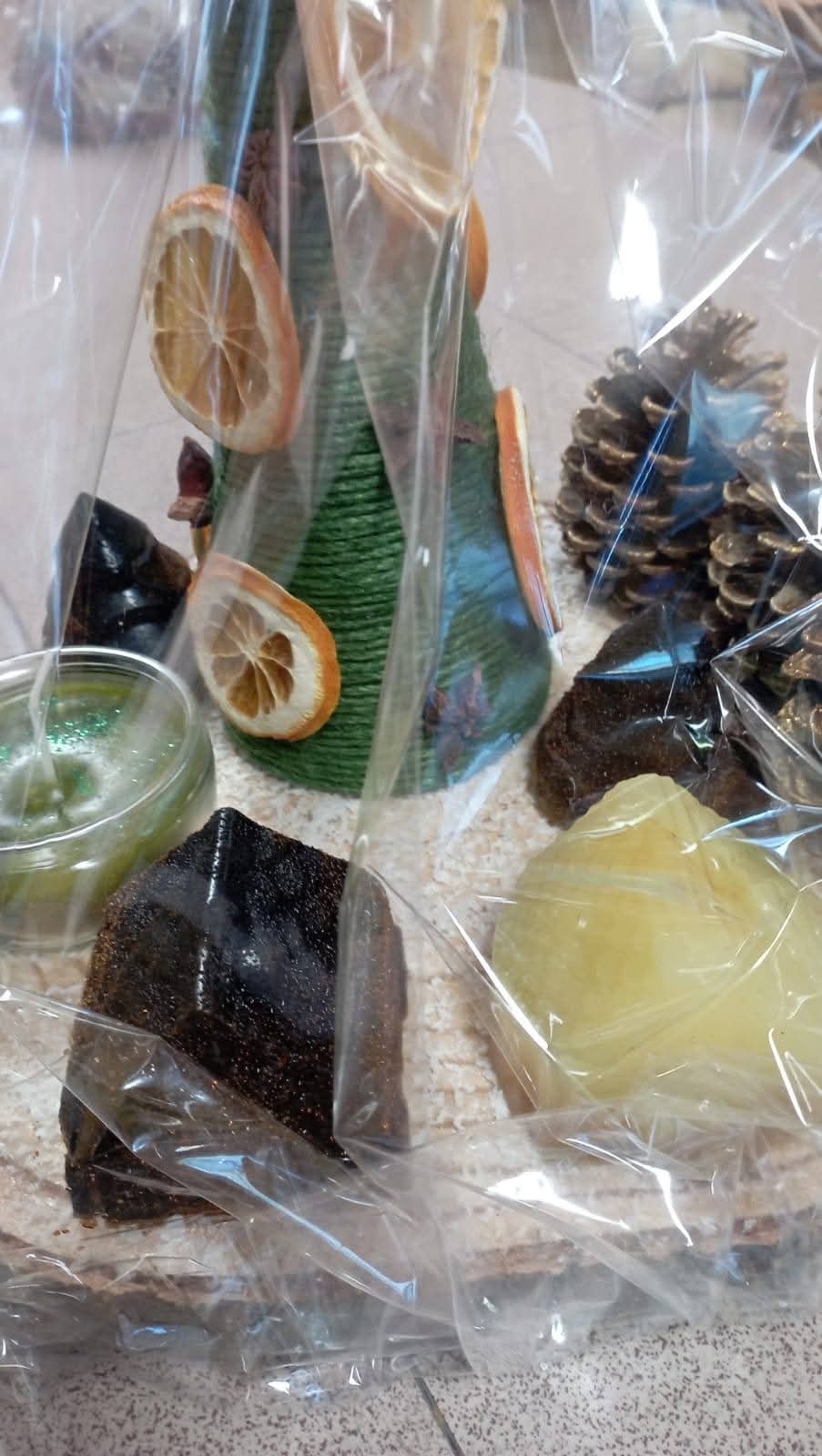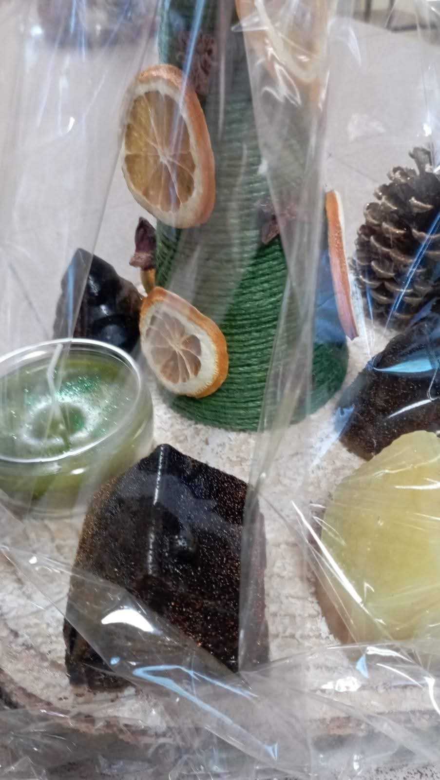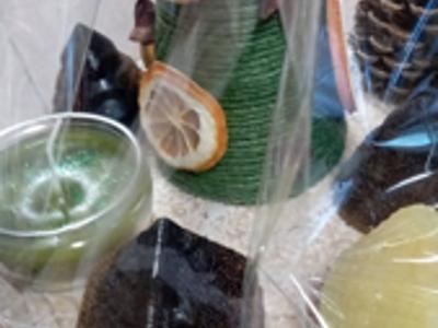 3.Zadaniem uczestnika konkursu jest wykonanie stroika świątecznego z wkomponowanymi mydełkami glicerynowymi i świeczką zapachową,wyprodukowanymi w warunkach domowych.