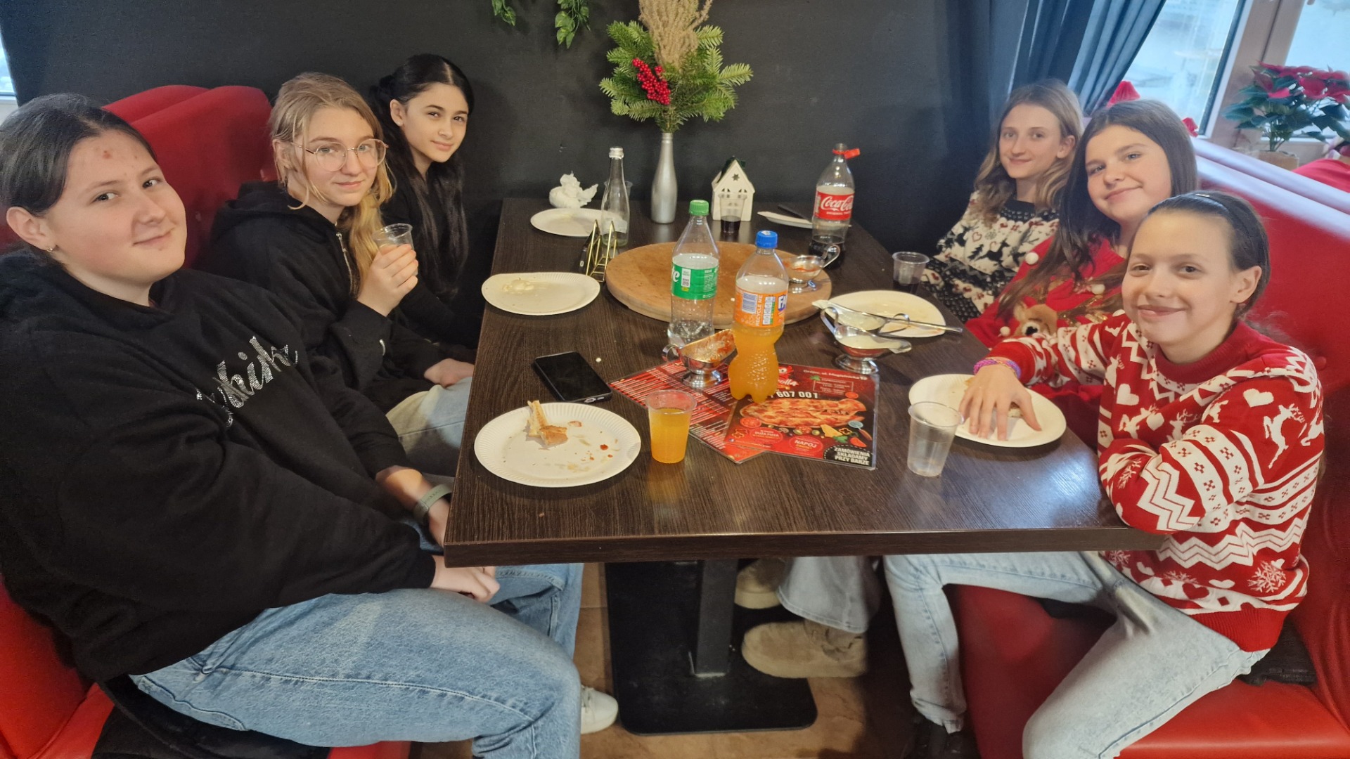 Wczoraj klasa 7a spędziła wyjątkowe mikołajkowe popołudnie ze swoją wychowawczynią w pizzerii Diavola. Było dużo śmiechu, rozmów i pysznej pizzy!