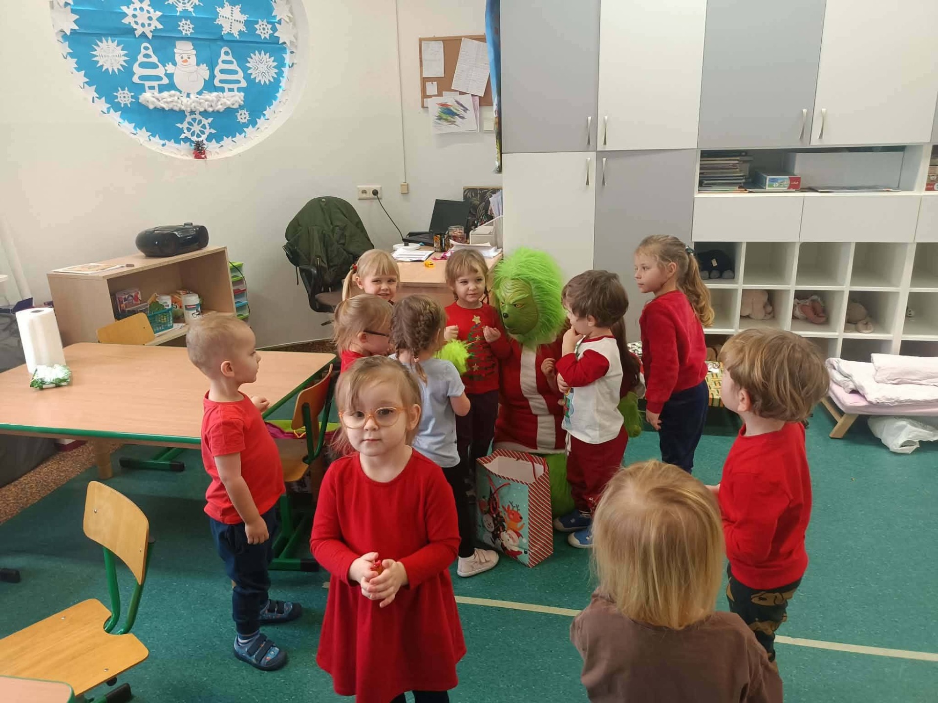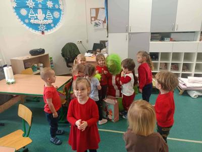 Chociaż początkowo był zły, kapryśny i psotny szukał ciepła i miłości którą znalazł wśród dzieci, które przyjęły go z otwartymi serduszkami. Grinch obserwował czas nadchodzących świąt i zaczyna rozumieć, że magia Bożego Narodzenia tkwi w czymś więcej – w wspólnocie, miłości i wzajemnym wsparciu.Podobno ukradł Święta ale w serduszku naszego Grincha zapanowała miłość i dobroć - i tak jak Św. Mikołaj🎅rozdawał dzieciom słodkie prezenty, podczas odwiedzin w każdej grupie miał torbę pełną cukierków.