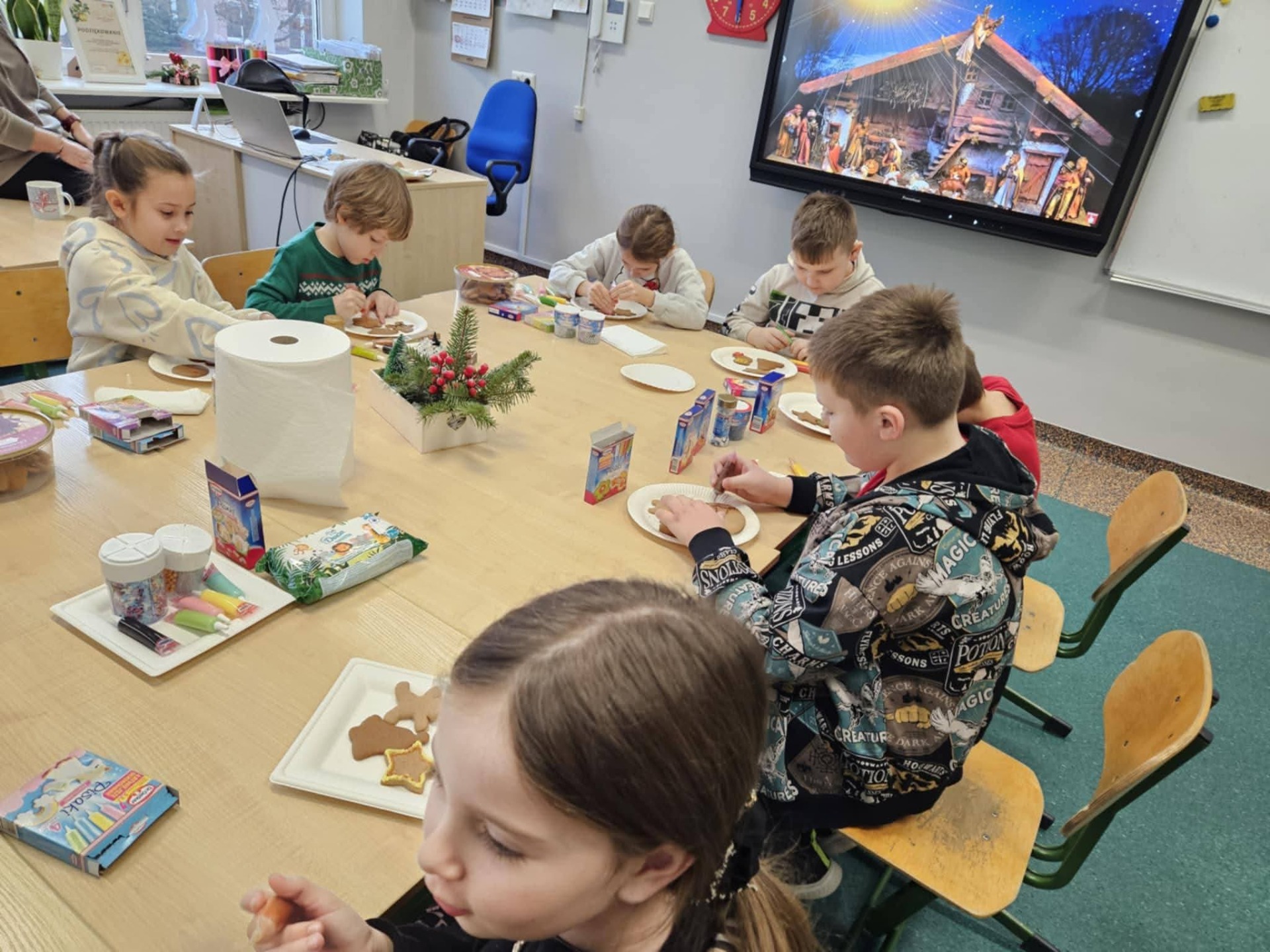 Przygotowując się do jasełek szkolnych oraz wigilii klasowej, uczniowie klasy 2e dekorowali pierniki😍. Dzieci pracowały z ogromną starannością i zaangażowaniem. Pierniki wyszły piękne i kolorowe, a radość była ogromna👌.