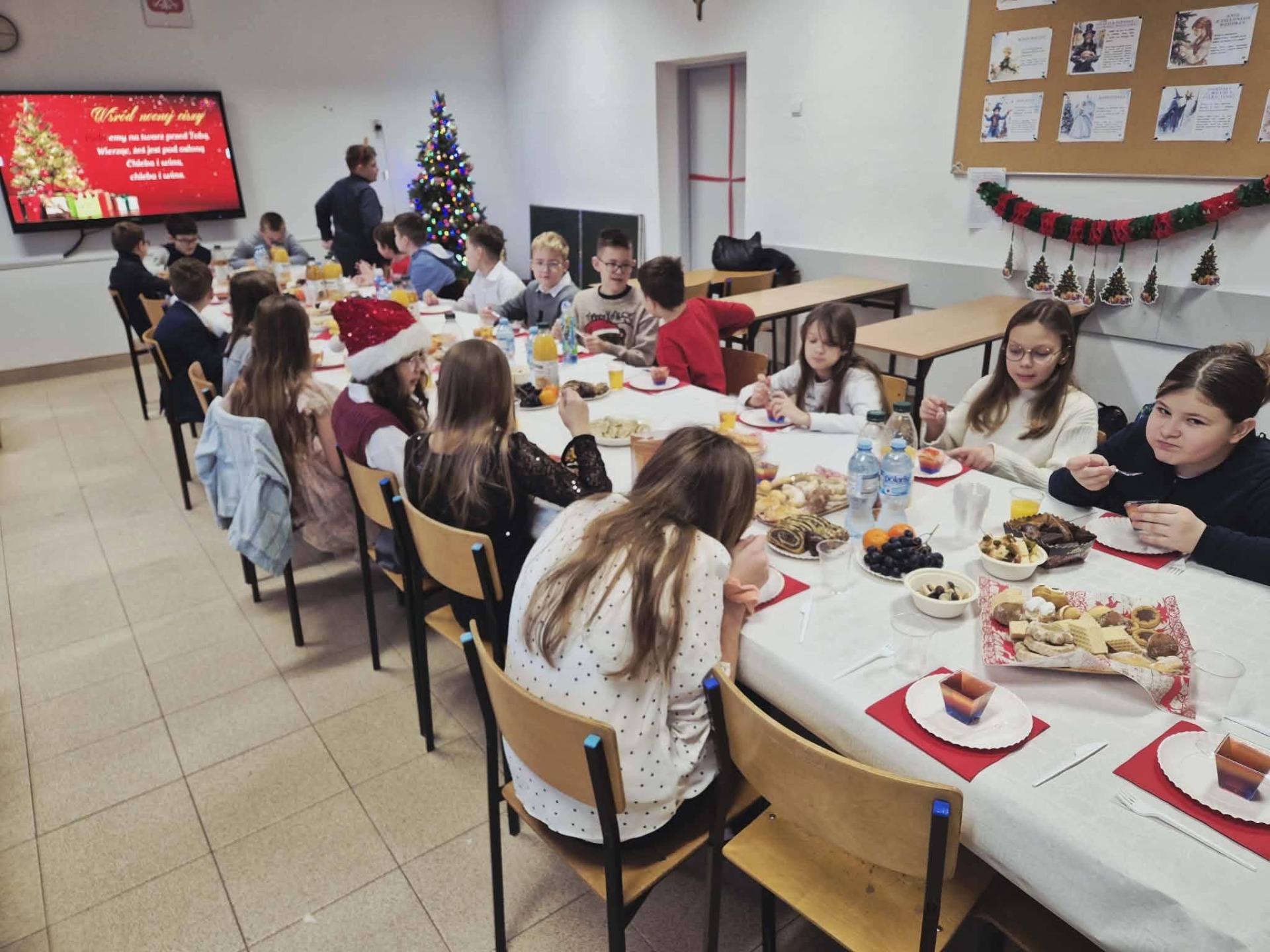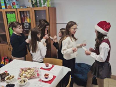 Uczniowie spędzili ten czas w miłej, świątecznej atmosferze, dzieląc się opłatkiem i składając sobie życzenia😊. Nie zabrakło rozmów, uśmiechów oraz wspólnego świętowania. Był to wyjątkowy moment sprzyjający integracji i budowaniu klasowej wspólnoty🤗.