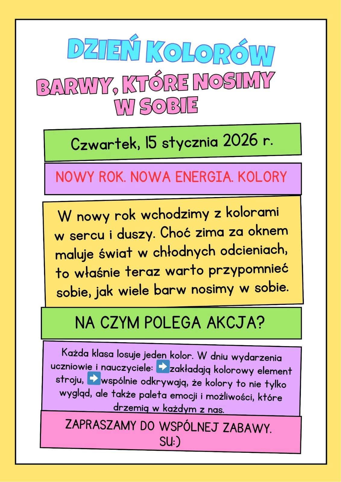 Uwaga! Czwartek- dniem kolorów w naszej szkole!
