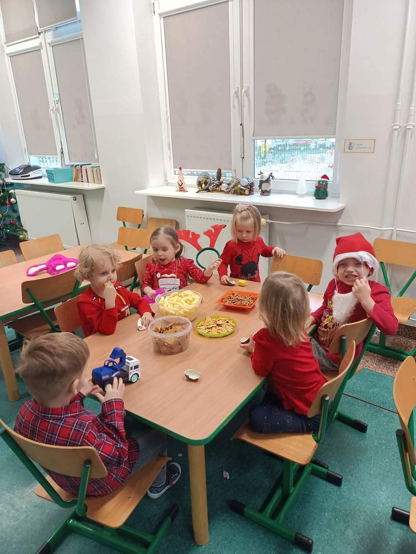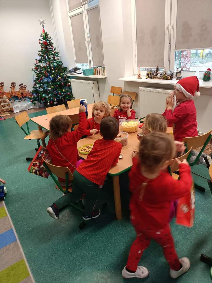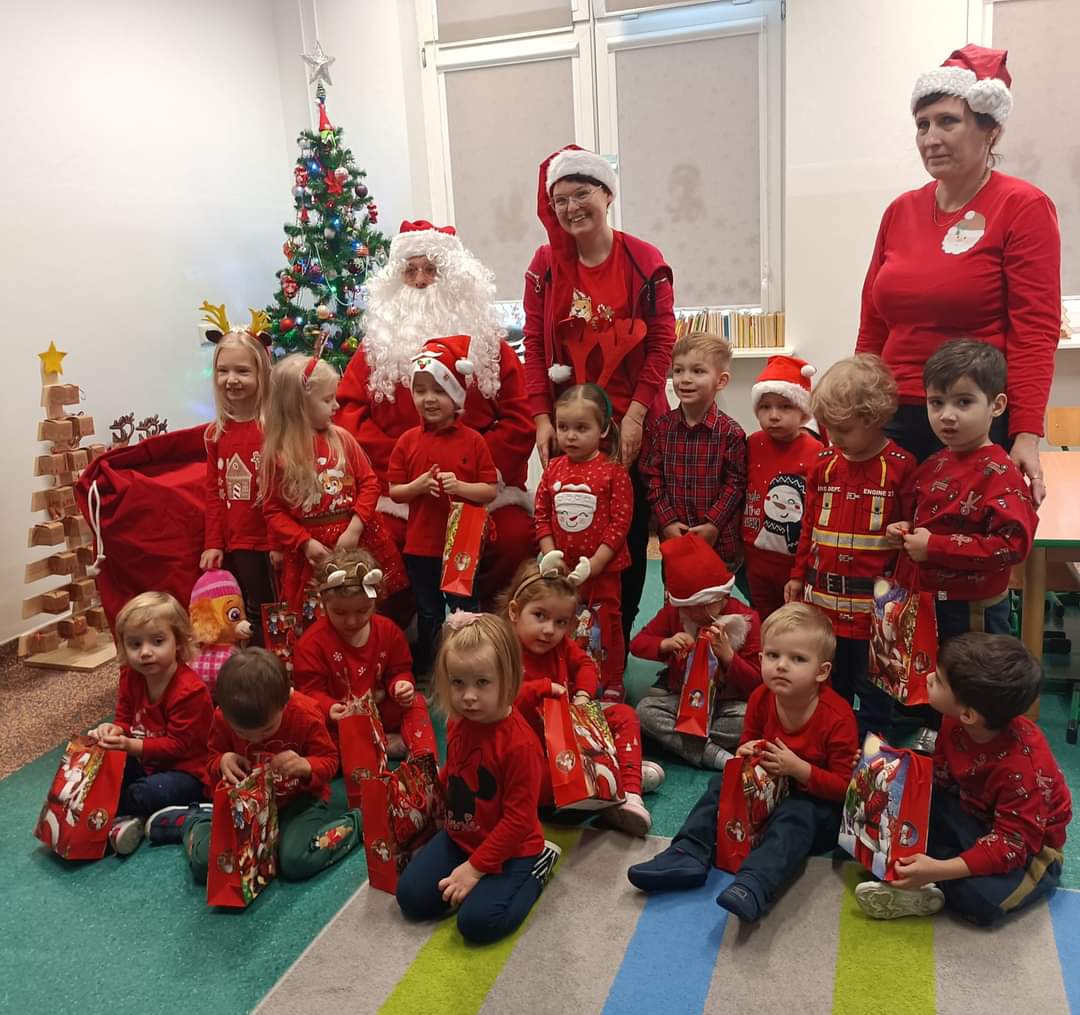 Przedszkolaki zaśpiewały Mikołajowi piosenkę , otrzymały prezenty, miały możliwość zrobienia pamiątkowego zdjęcia z Mikołajem, obdarowały go również pierniczkami i wykonaną w sali książką, która powstała z pokolorowanych przez dzieci obrazków.